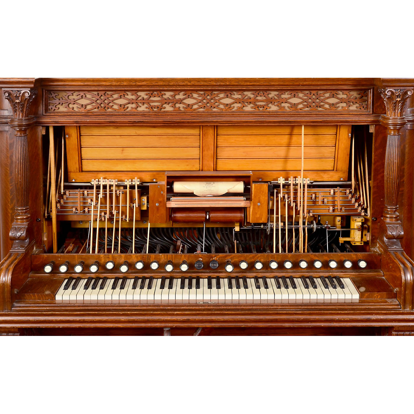 The Aeolian Company, USA. With 58 notes, 20 stops, oak case, with additional electric blower (220 volts), very good playing condition, 64 x 28 x 59 in., with 24 music rolls. - Please note: Due to the size and weight, pickup or transport by a third-party shipper only.