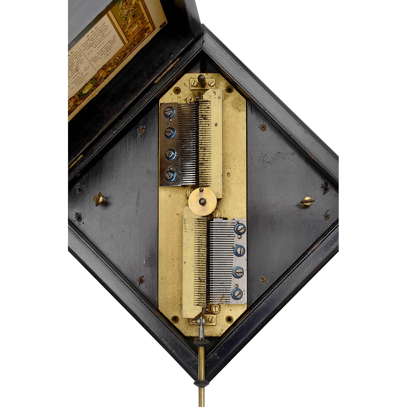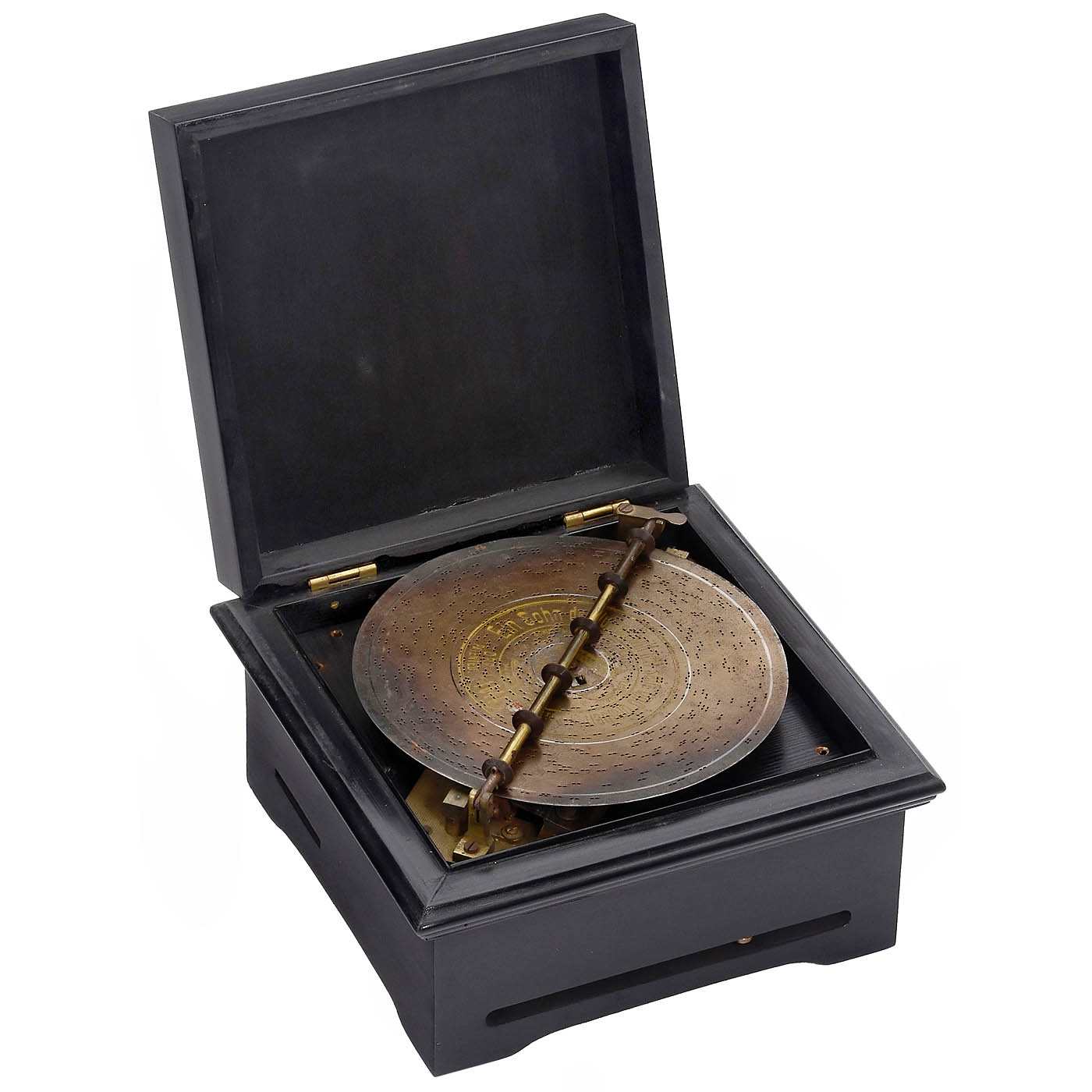 For 9 ½ in. discs., 72 teeth each (complete), one in original case, the other in modern case, parts of the governors detached, combs are in good condition with attractive tone, with 10 discs.