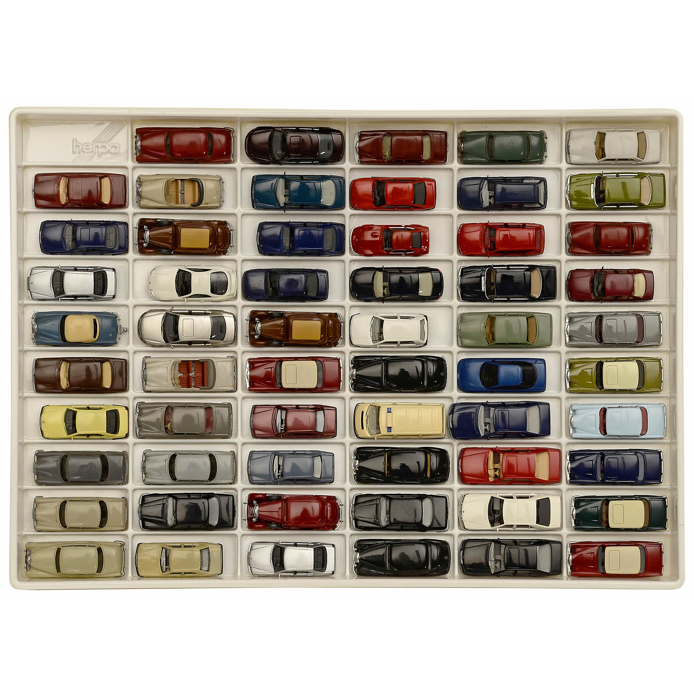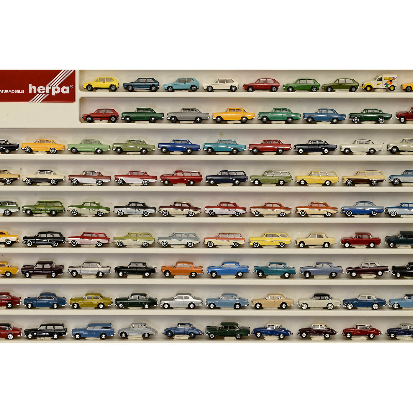 1700 plastic models by Wiking, Herpa, Rietze, Brekina, Praline, Busch and others, in Herpa display cases, and 50 Welly metal models, vehicles mostly in mint condition, a few side mirrors missing, cases with age-related wear. - In addition: 34 packs of figures from Noch, Preiser and Faller; 4 Märklin Z scale wagons; 3 Faller synchronous motors; 4 Kibri Z scale kits; various H0 scale houses, other railway accessories and 28 metal car models in various scales. - Not all pictured.