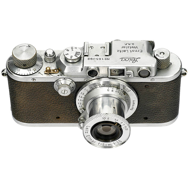 Leitz, Wetzlar. 镀铬. 带Elmar 3.5/5cm 镜头, no. 987771, 带镜头盖.