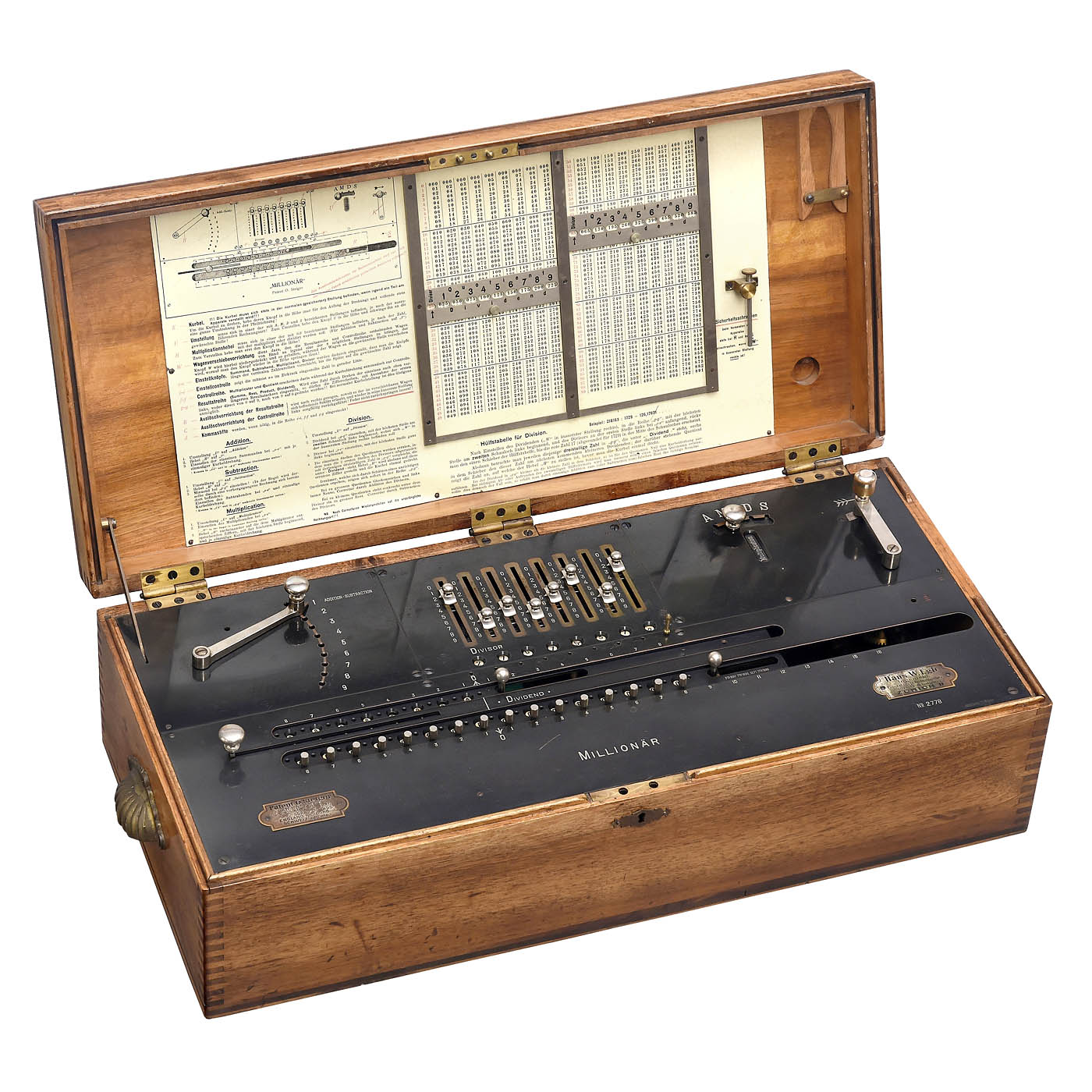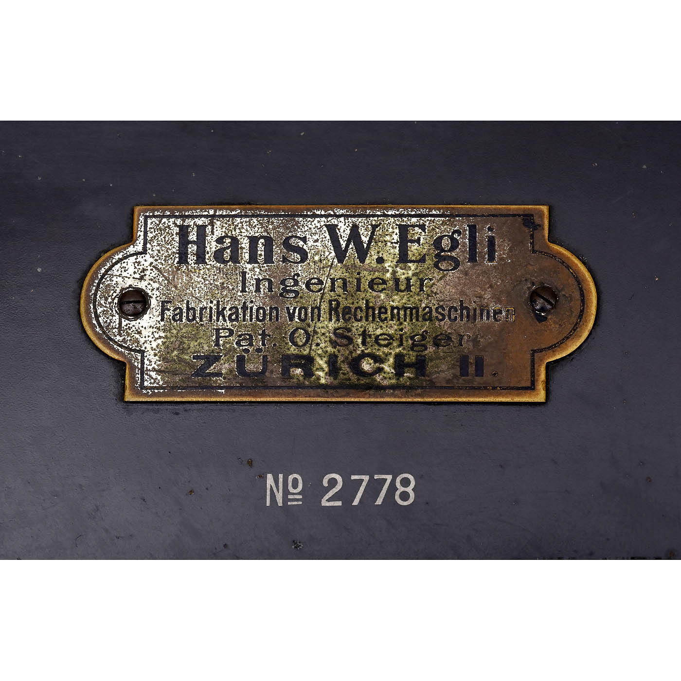 No. 2778, attractive example of the famous calculating machine with direct multiplication, with 8, 8 and 16 digits, in original wood case with instructions in lid, manufactured by Hans W. Egli, Zurich, Switzerland, working well. - Literature: Martin, p. 126. - A very rare and attractive milestone in calculating history!