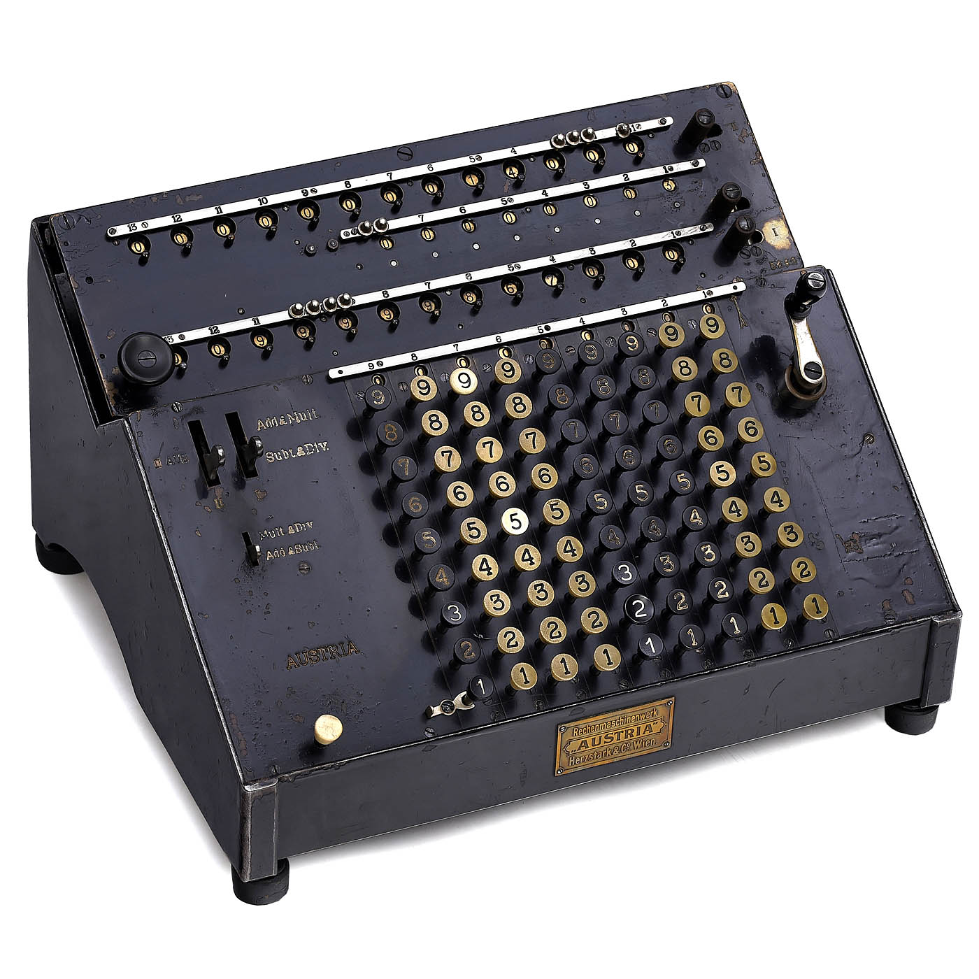 Herzstark & Co., Vienna (the company owned by the father of Curt Herzstark, inventor of the Curta calculator). No. 5286, with keyboard, eight-digit revolution counter and two thirteen-digit results mechanisms. Extremely rare and interesting collector's item!