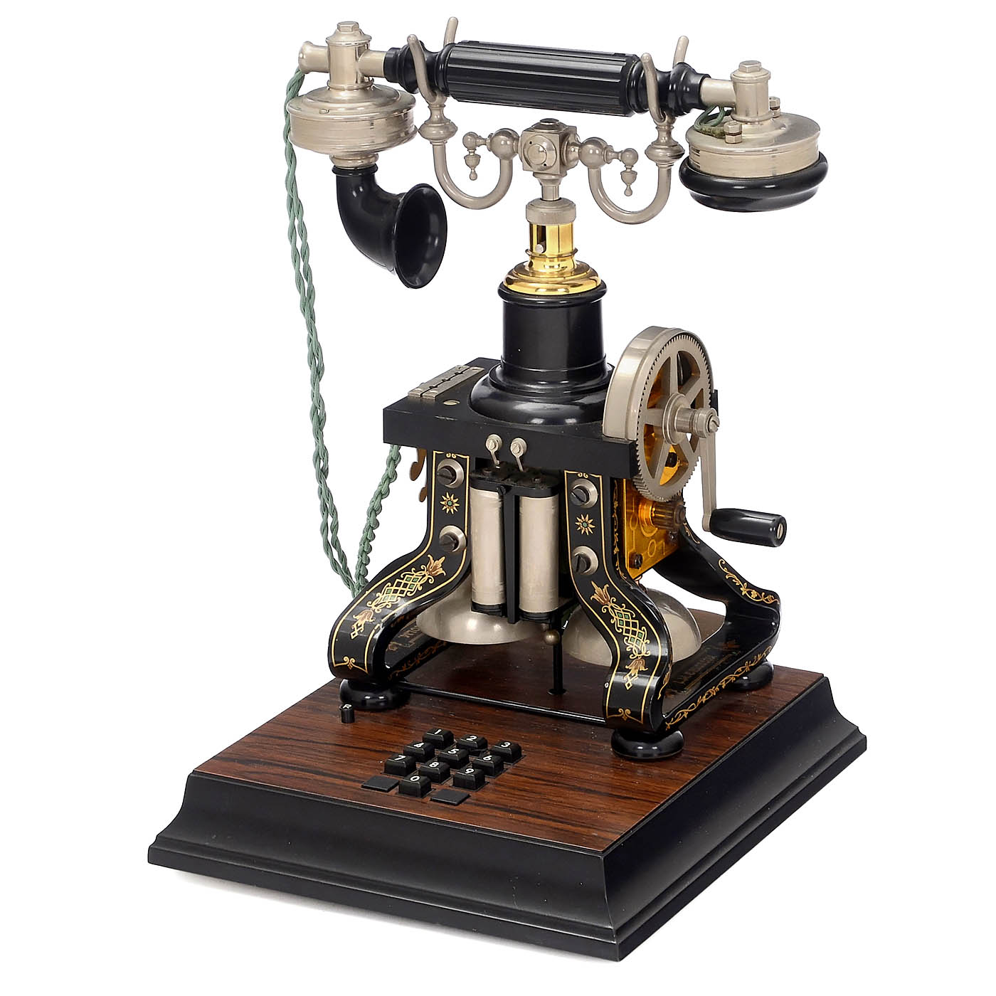 Reproduction from 1976, one of 5,000 units manufactured for the Swiss PTT by Ericsson in Sweden, mainly original parts with the addition of then modern technology in the base, in good condition.