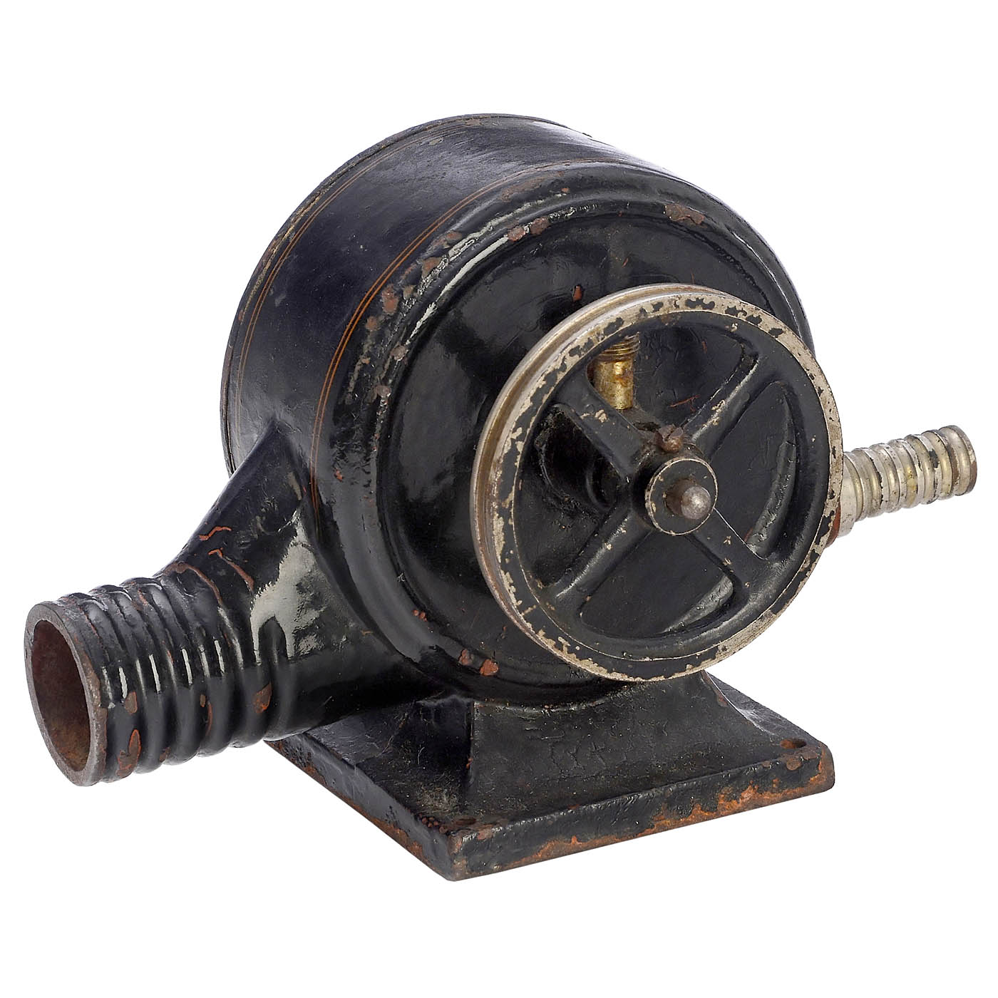 For connection to a water pipe, solid cast iron, original paintwork, cover with window glued to the case, pulley Ø 2 ¾ in., length 7 ¼ in., height 4 4/5 in., works.