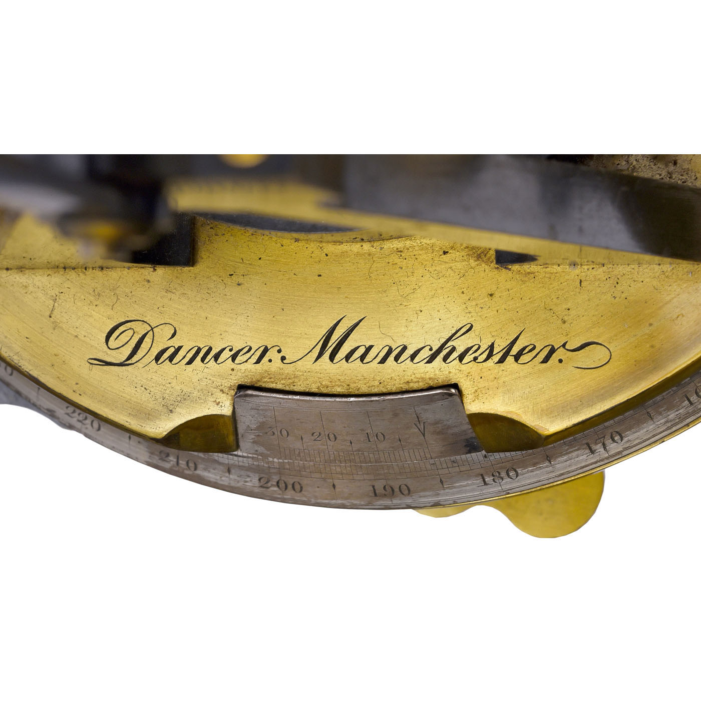 John Benjamin Dancer, Manchester. Original lacquered and oxidized brass, telescope with rack-and-pinion focusing, silvered scales and veneers, 2 magnifiers, 3 bubble levels, 4 leveling screw feet, length of the retracted telescope 13 ¾ in.