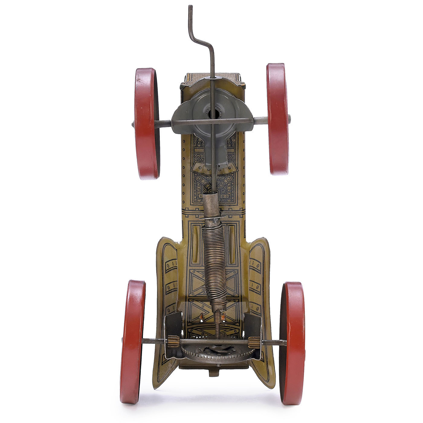 Gebrüder Einfalt Blechspielwarenfabrik, Nuremberg (later Technofix). Catalog no. 177, lithographed tin, spiral-spring (works), length 7 1/2 in.