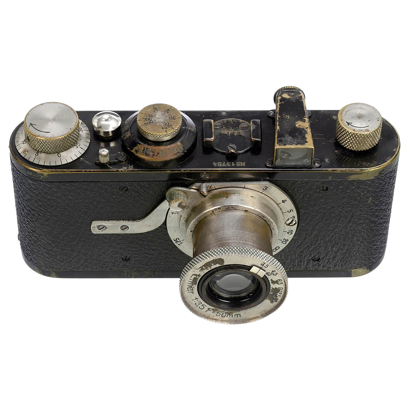 Leitz, Wetzlar. 1) Leica I no. 13754, c. 1929, Elmar 3.5/50 mm, slow shutter, spring plate for shutter release broken inside the camera base (can be replaced), with case. (3/4) – 2) Leica I no. 45489, conversion to Leica II, rangefinder and shutter accurate, with nickel Elmar 3.5/5 cm, glass clean under point light, with case. (3/2) – And: 3) Leica II no. 296945, c. 1938, with Elmar 3.5/5 cm no. 399350, same year of manufacture, with case. (3/3)