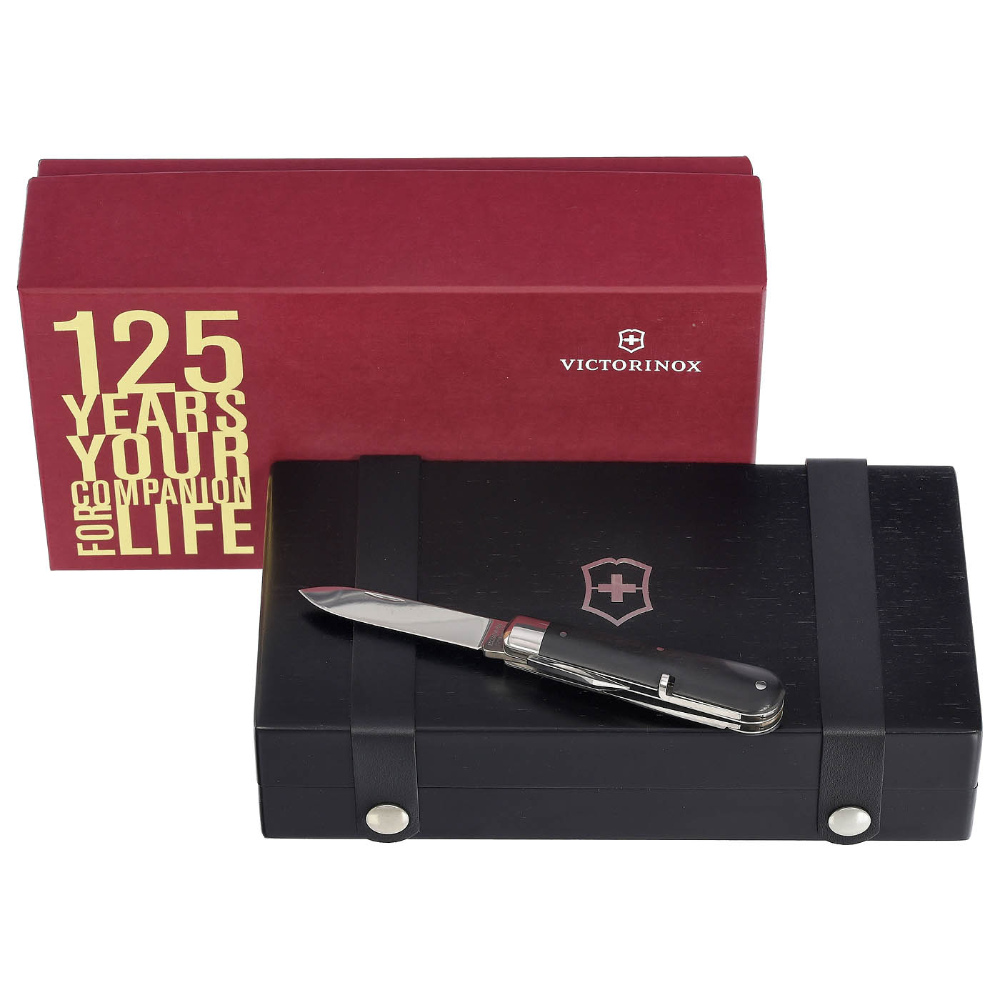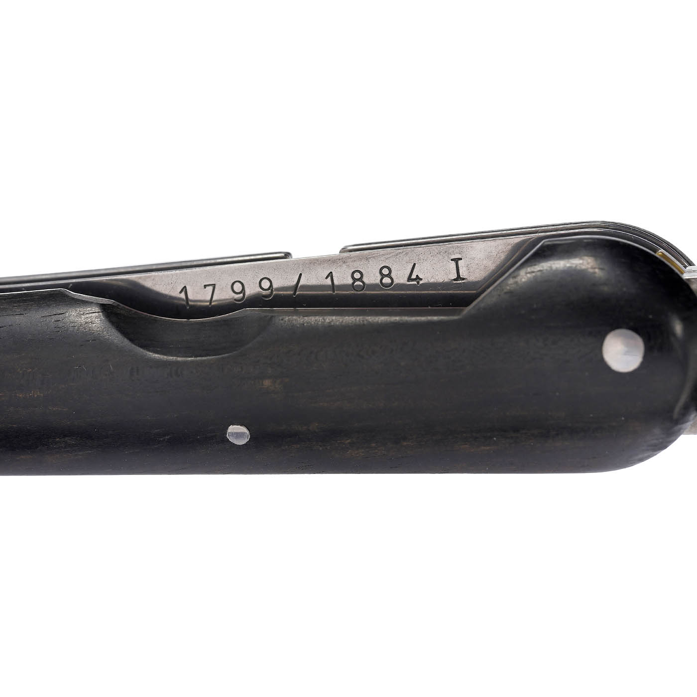 Victorinox, Switzerland. Original replica of the very first soldier's knife delivered to the Swiss army by Victorinox in 1891. No. 1799/1884, only four series of 1884 copies each in the whole world. In mint condition, with certificate in wooden case and cardboard box.