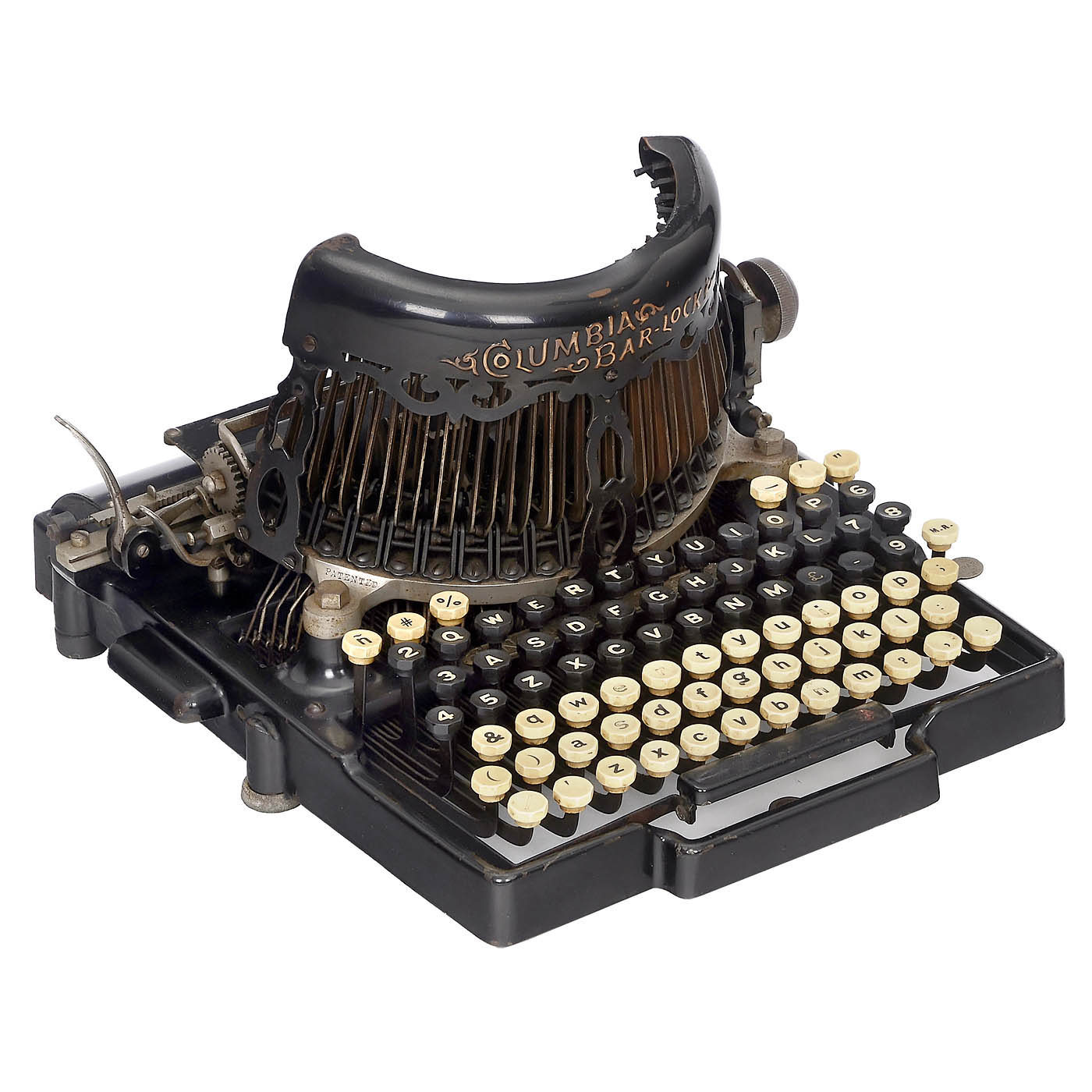 3 mechanical typewriters. 1) Typo Model D, c. 1920, serial no. 65286, made by Manufacture Française d'Armes & Cycles de Saint-Étienne. French version of the popular English "Imperial Visible", French keyboard (clavier français), partially repainted. – 2) Columbia ‘Bar-Lock’, c. 1910, attractive design, full keyboard, downstrike, serial no. 80986. – Literature: Martin, 1949, p. 102. – And: 3) Hammond Universal, 1904 onwards, serial no. 15030, early American type-sleeve machine with straight universal keyboard, 30 keys in 3 rows, cylindrical plastic paper-holder under the plate, two-part type shuttle, working, with oak base.