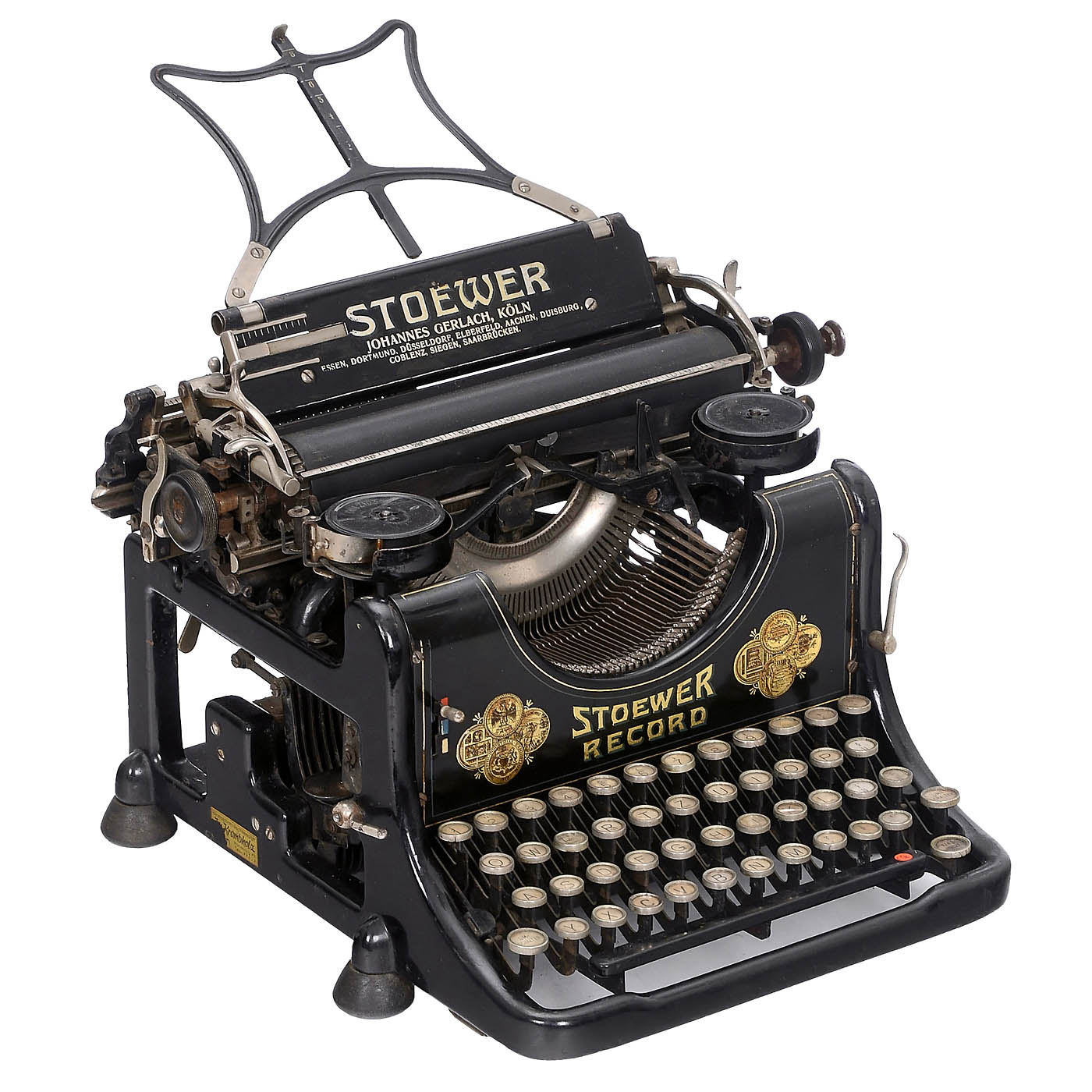 1) Stoewer Record, 1909 onwards, no. 37794, Bernhard Stoewer A.G., Stettin, working, partially somewhat resinous. – 2) Torpedo 3, 1908, no. 1648 (1641), Torpedo Büromaschinen Werke A.G., Frankfurt, successor model to the Hassia, with front plate, partially repainted, working. – And: 3) Continental Standard, 1907, no. 4023, Wanderer Fahrradwerke Chemnitz in Saxony, in good optical condition, carriage cable torn.