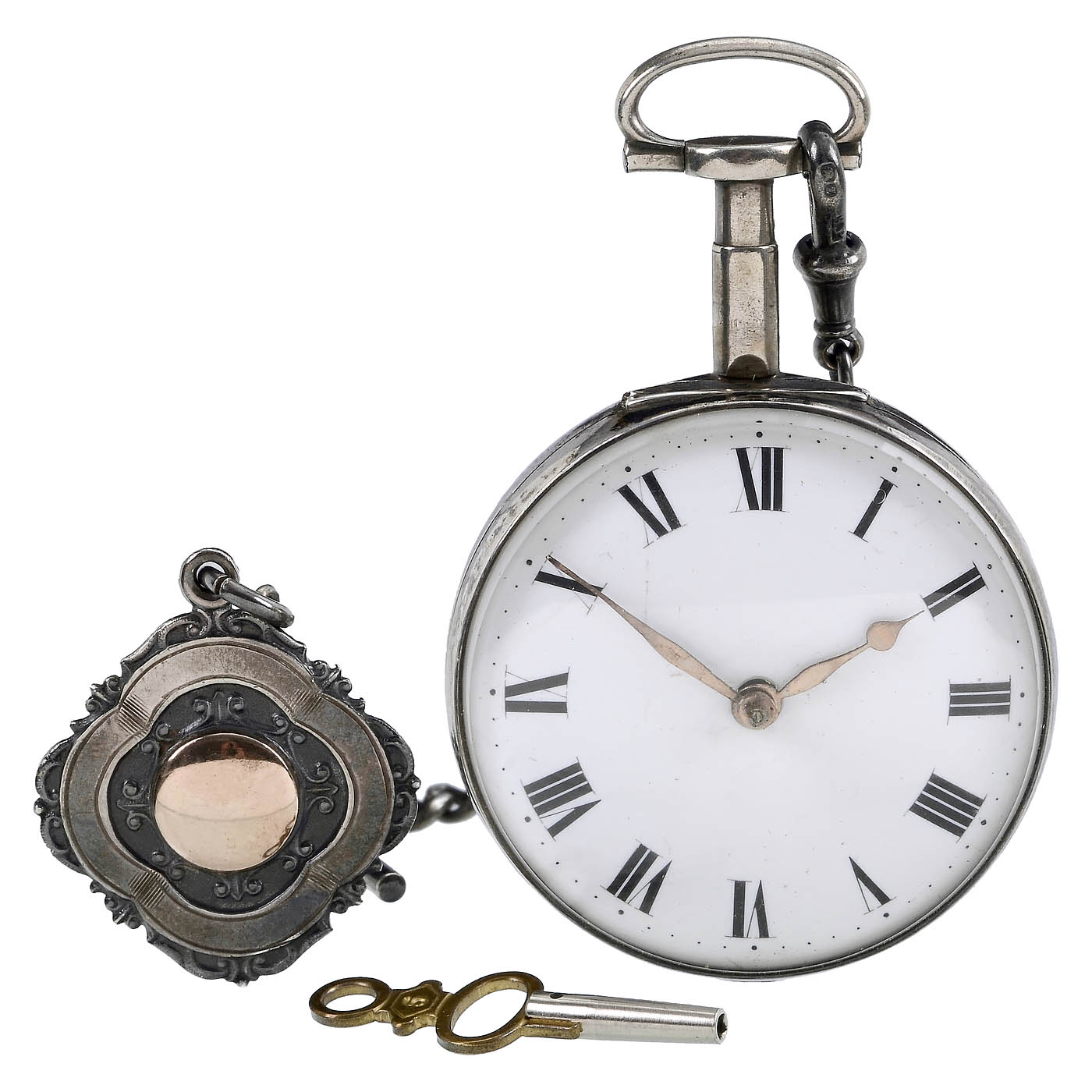 English Pocket Watch with Chain and Silver Medallion, Mid-18th C