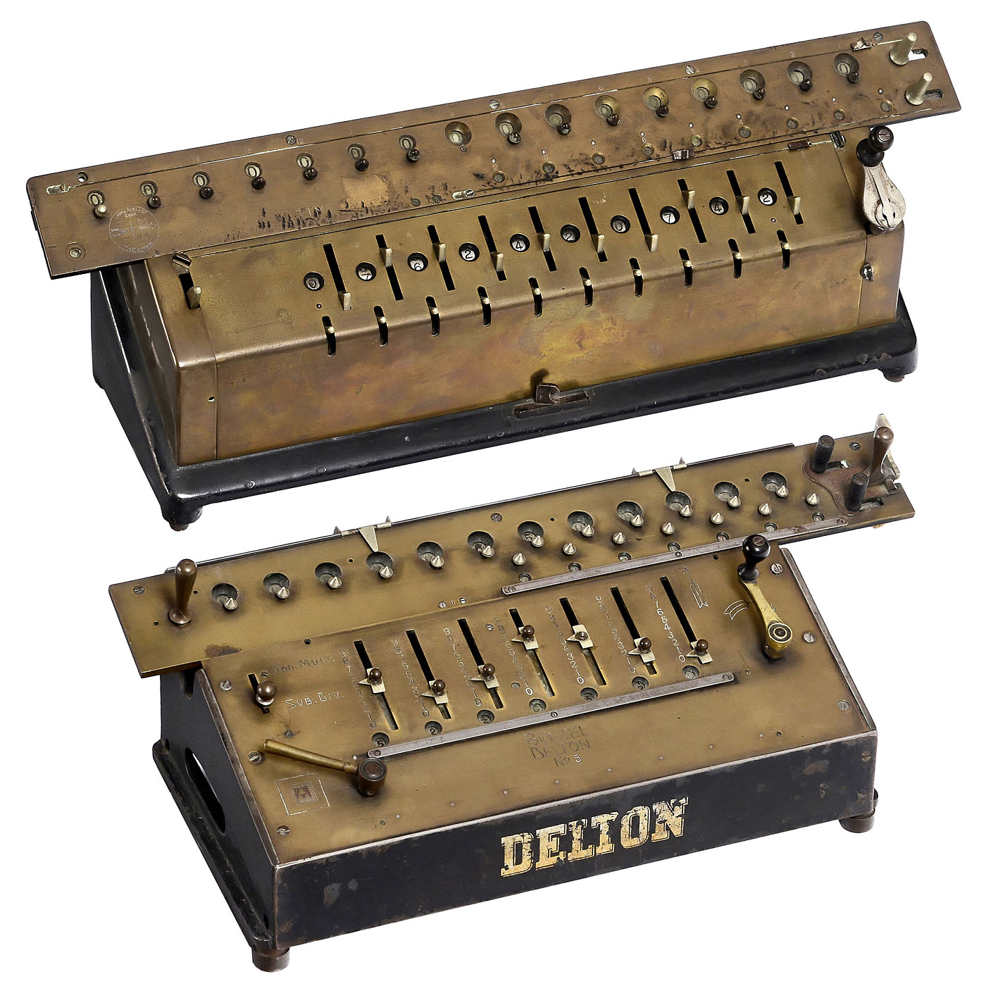 1) "TIM Mod. IV" (Time Is Money), 1909, stepped-drum calculating machine by Ludwig Spitz, Berlin. No. 02242. With 10, 9 and 16 digits.