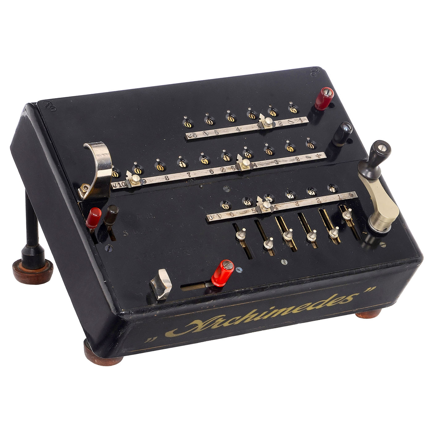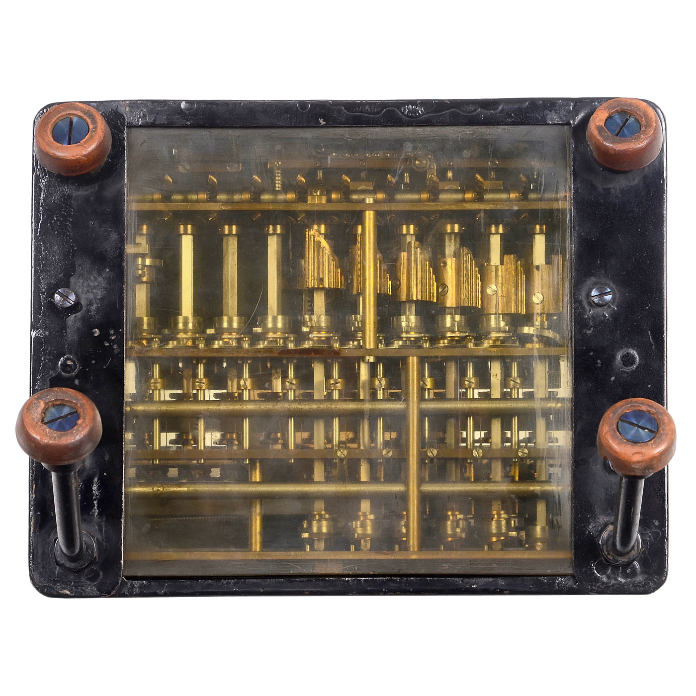 Rare small stepped-drum calculator by Reinhold P?thig, Glash