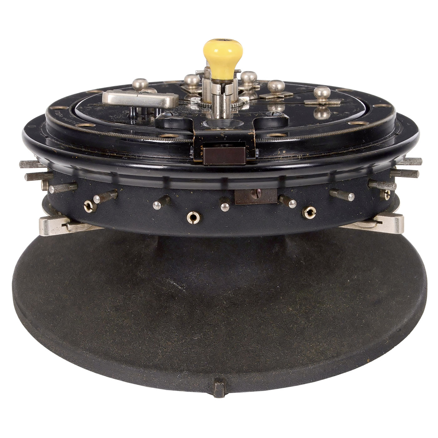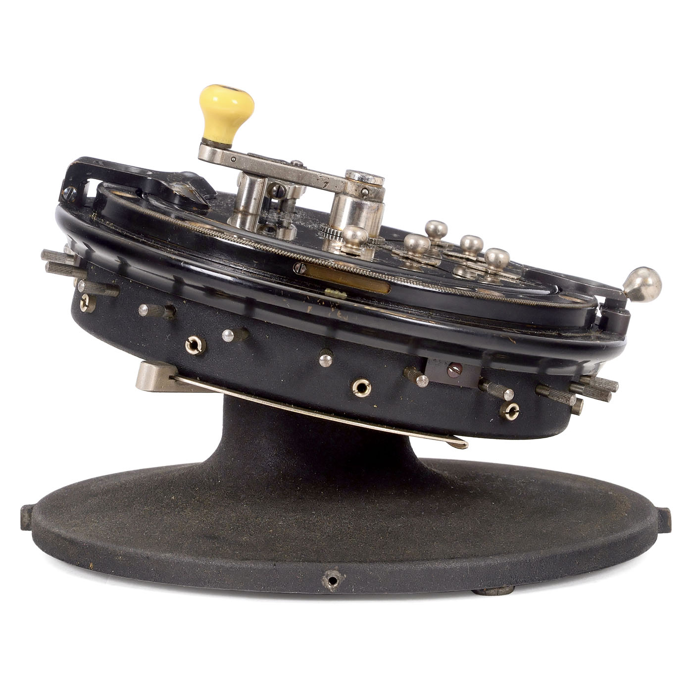 Mercedes-Bureau-Maschinen Ges. mbH, Berlin, S.W. 68. Low serial no. 1610, German patent 194527 from 23 March 1905, stepped-disc calculating machine for all four basic arithmetic operations, with indirect subtraction, with 6, 10 and 10 digits, on table stand, in good working condition.