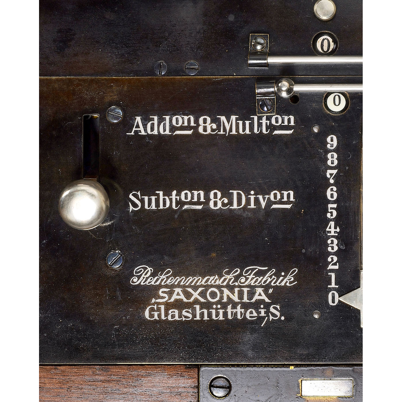 Rare German stepped-drum calculating machine by Rechenmaschinen-Fabrik Saxonia, Glash