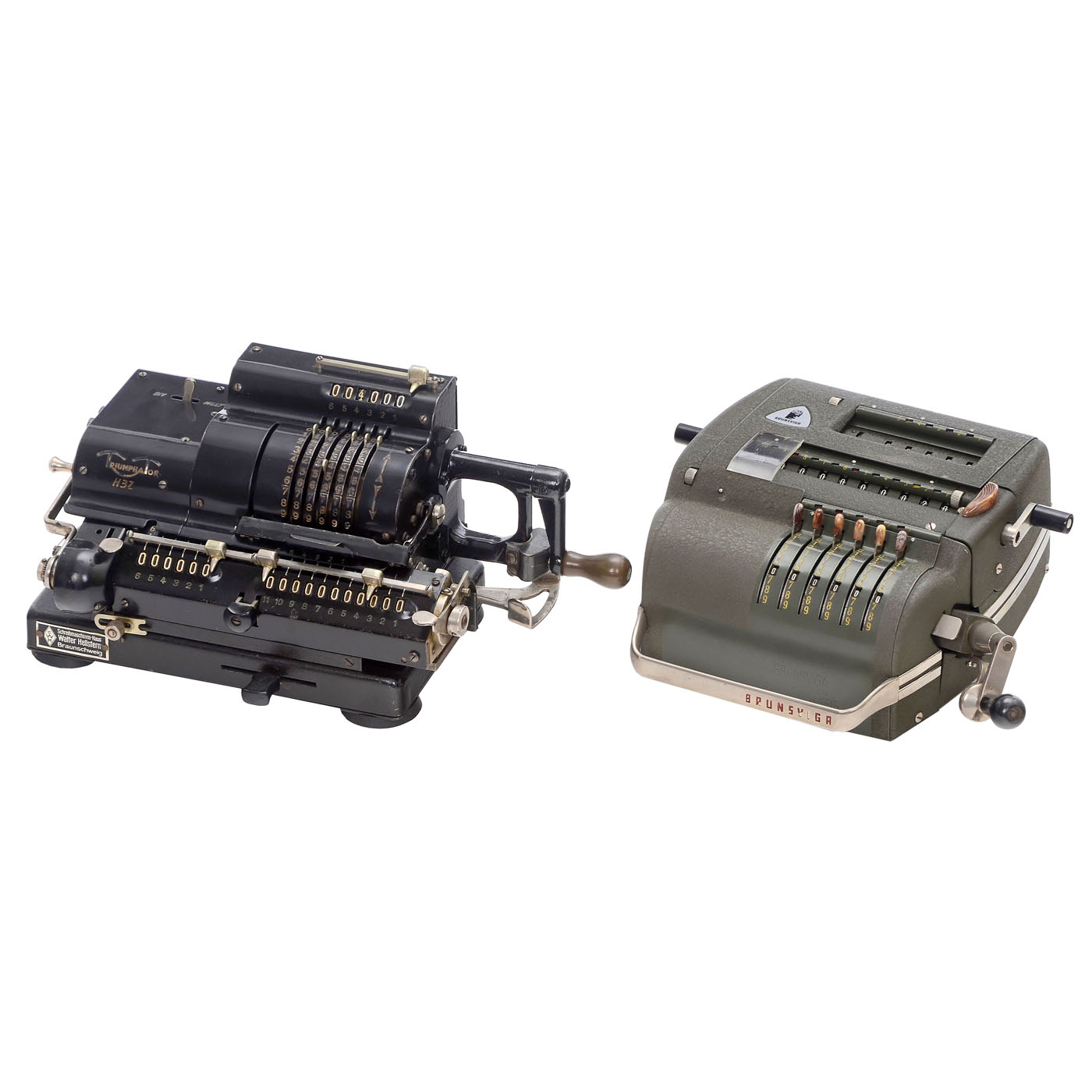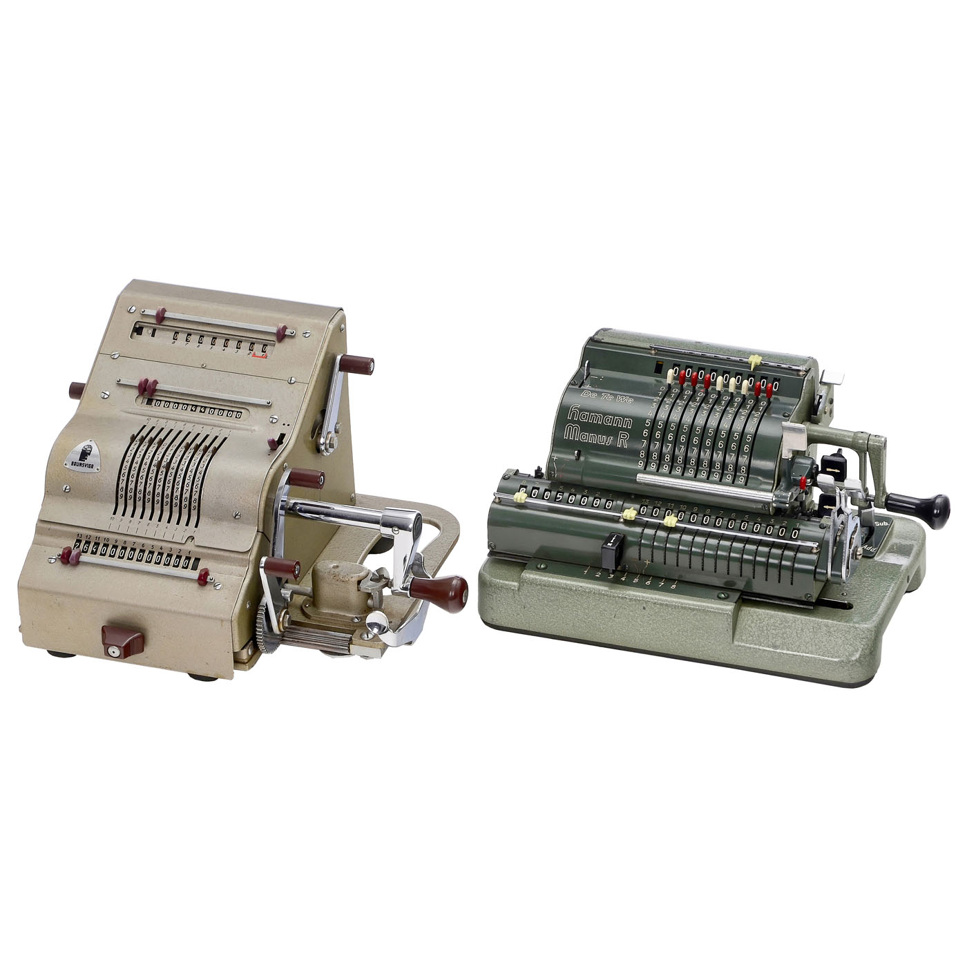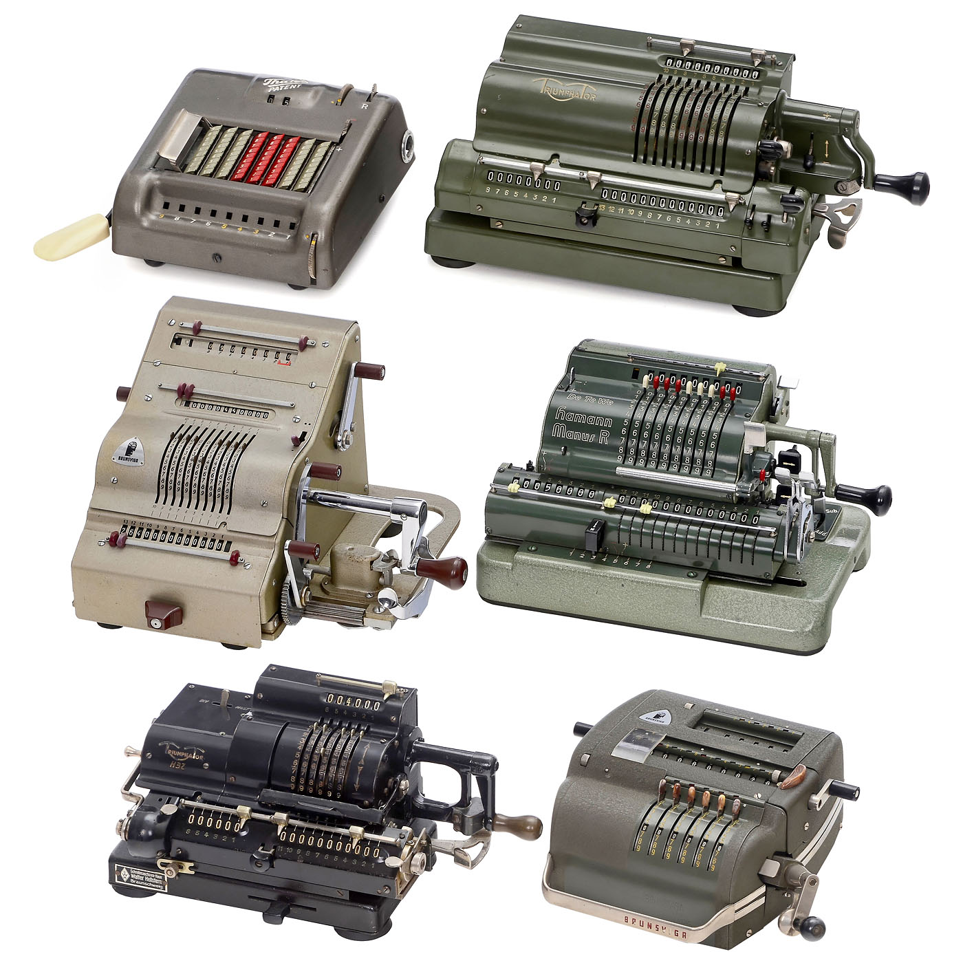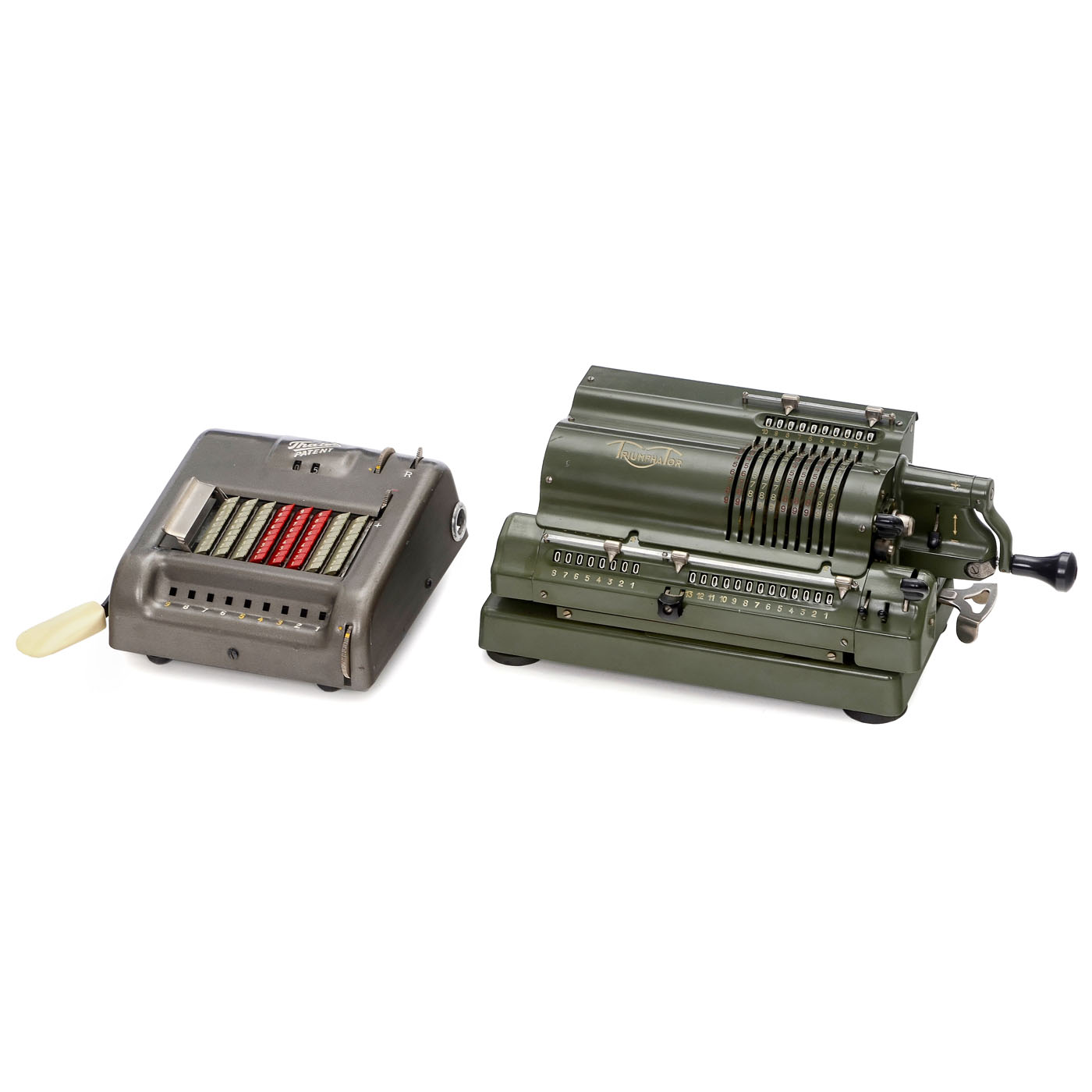 1) Triumphator CN1, c. 1957, GDR, spokewheel machine, with 10, 8 and 13 digits, works.