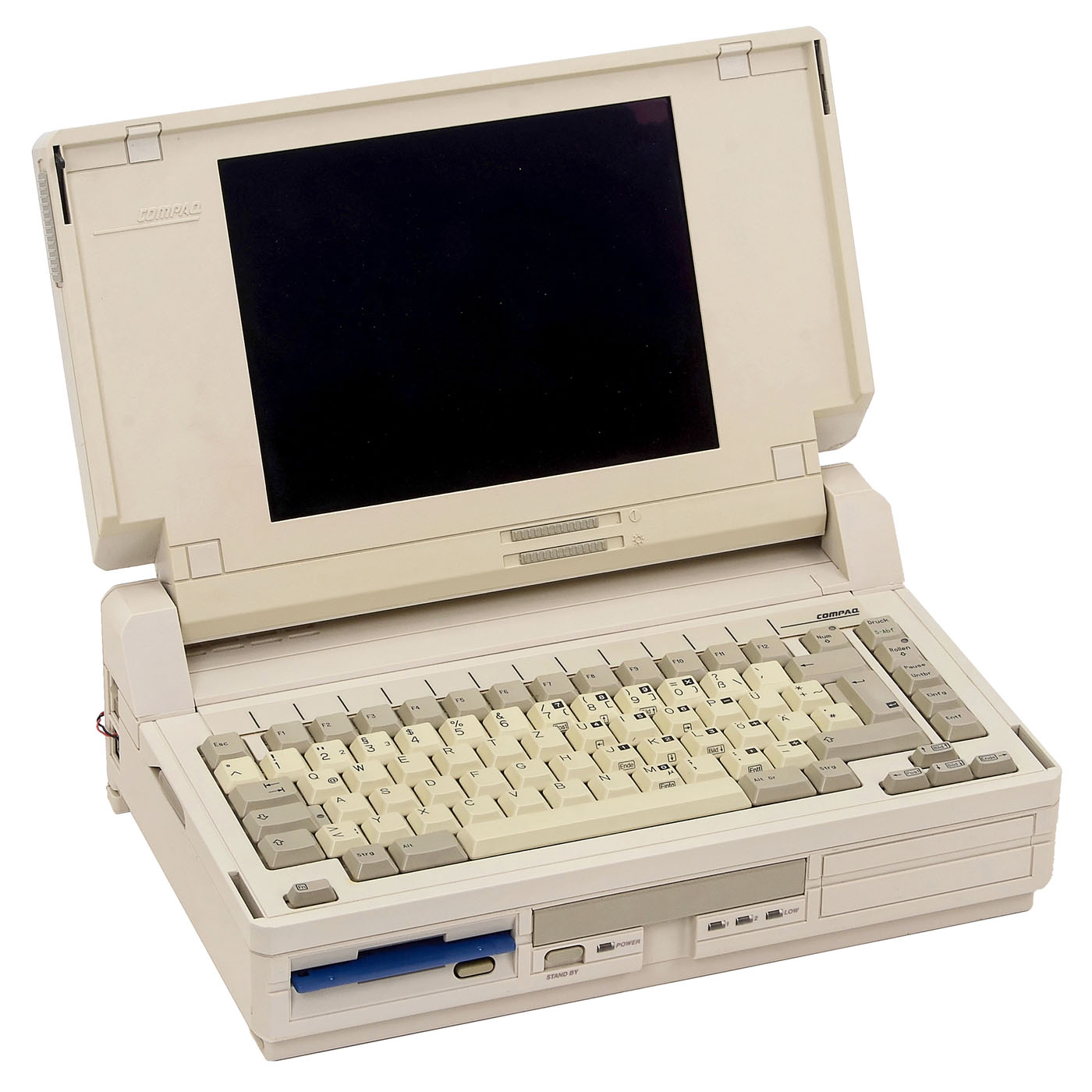 MS-DOS 3.31 operating system, 1 MB RAM main memory, 20 MB HDD hard disc, Dallas chip renewed, with compatible power supply unit. Special feature: early portable IBM-compatible 386 laptop, a classic among the "lunch box" computers.