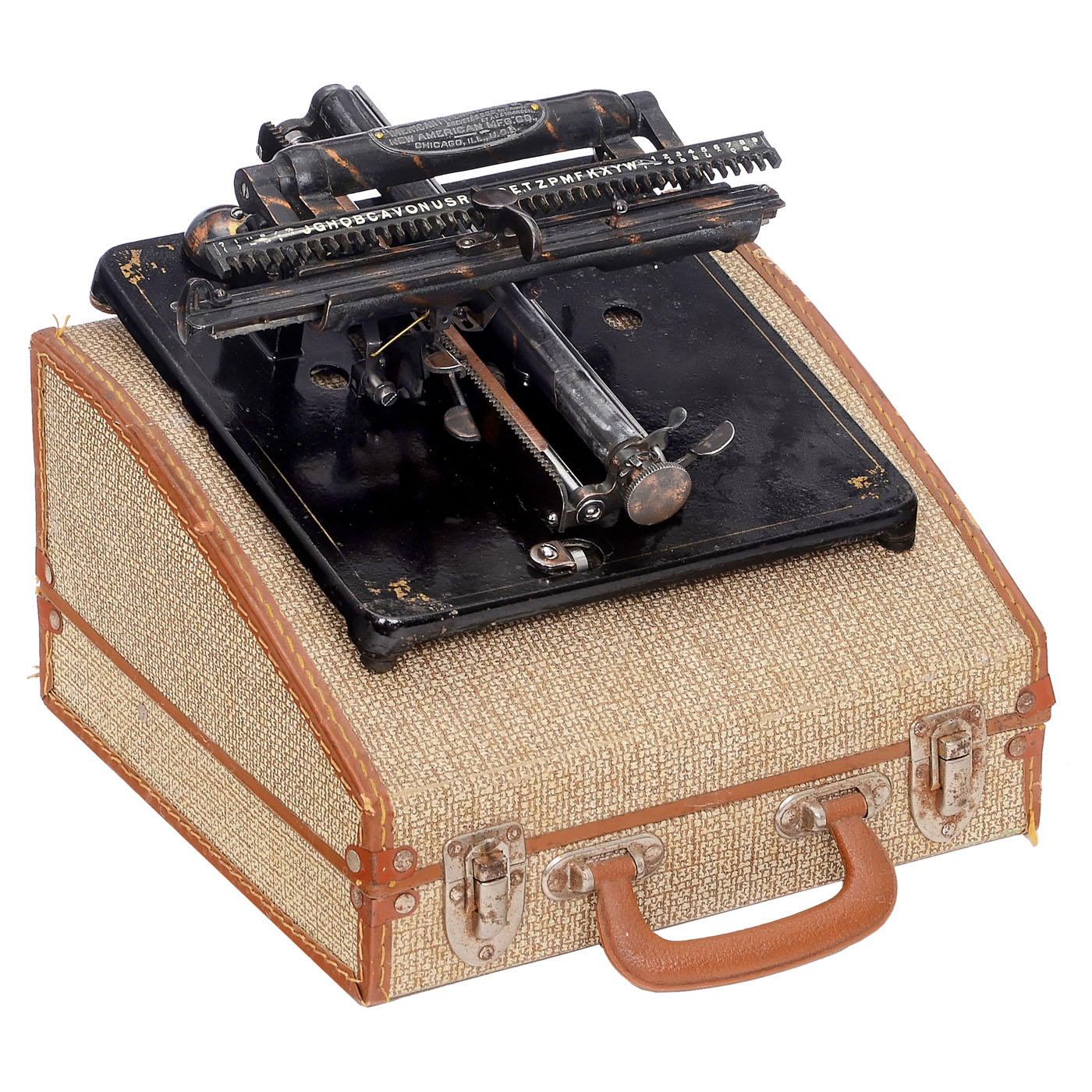 1) "The International Type Writer No. 5", 1890, New American Typewriter Company, Chicago, USA. Rare version of the "New American No. 5" index typewriter, in good working order, with suitcase.