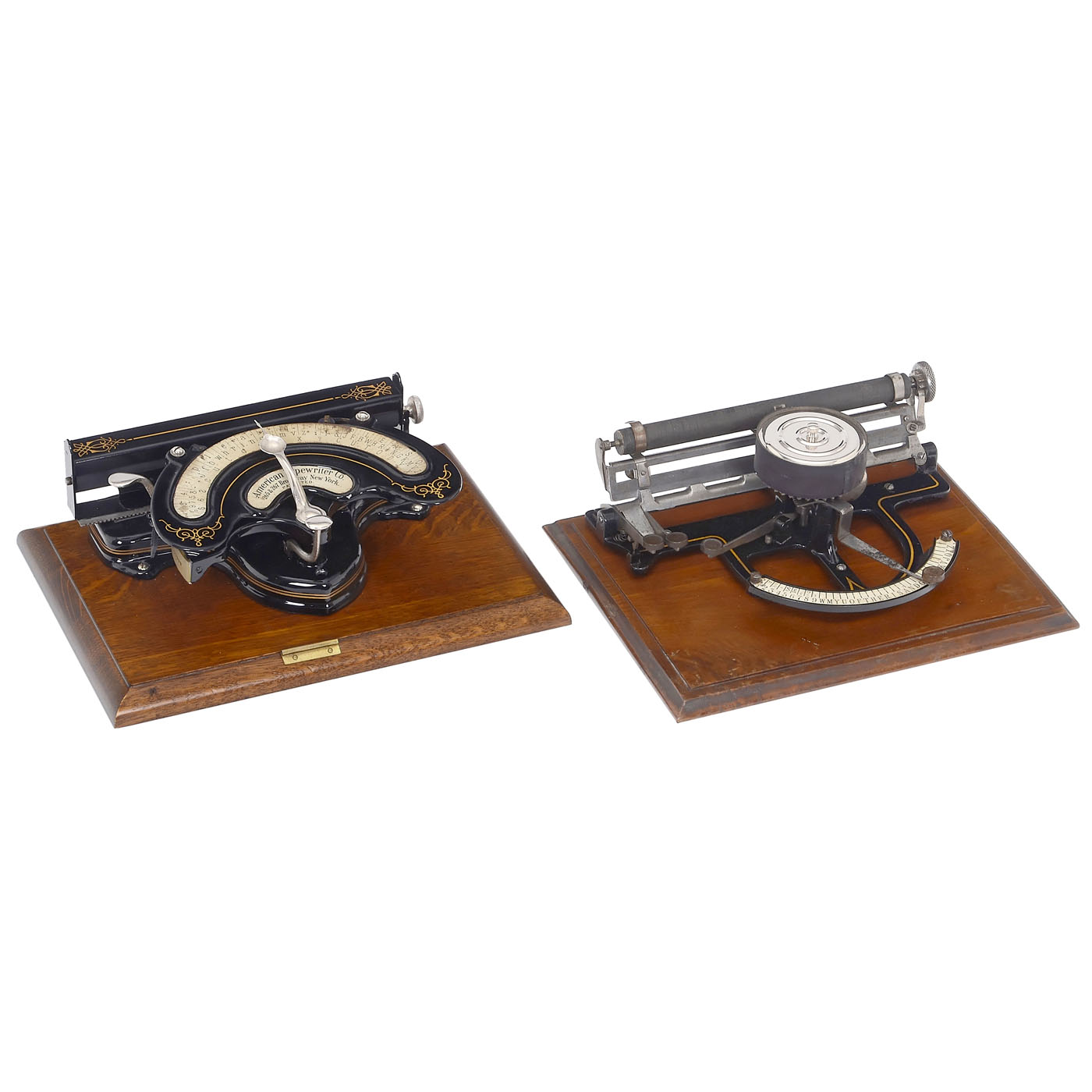 1) "Peoples", 1893, rare American index typewriter, manufactured by Garvin Machine Company, New York, restored, working, on wood base.