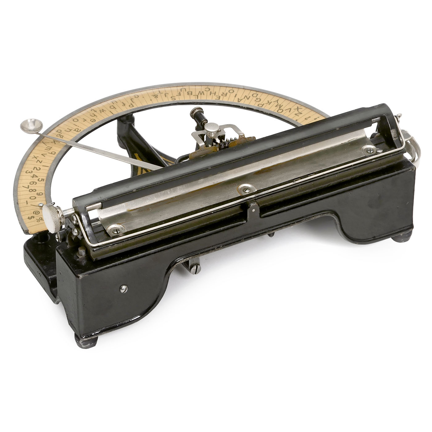 Tilton Manufacturing Company, Boston. The design of this American index typewriter anticipates the typewheel system reinvented 75 years later for the early Daisy-wheel fast printer.