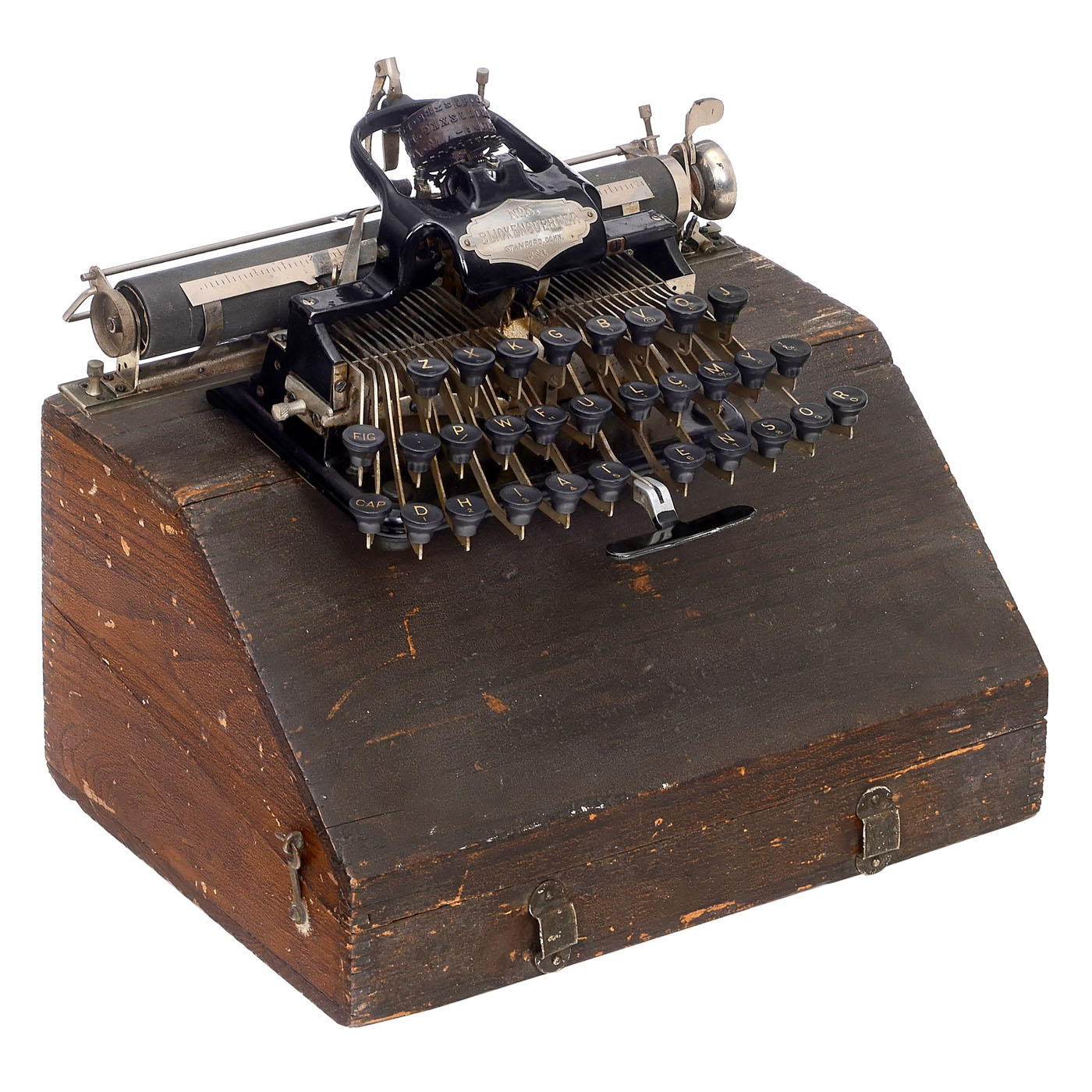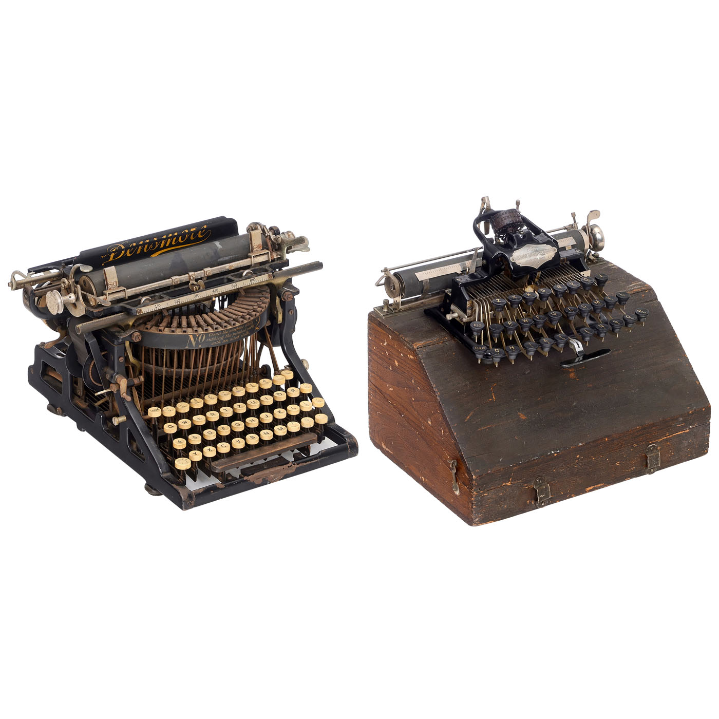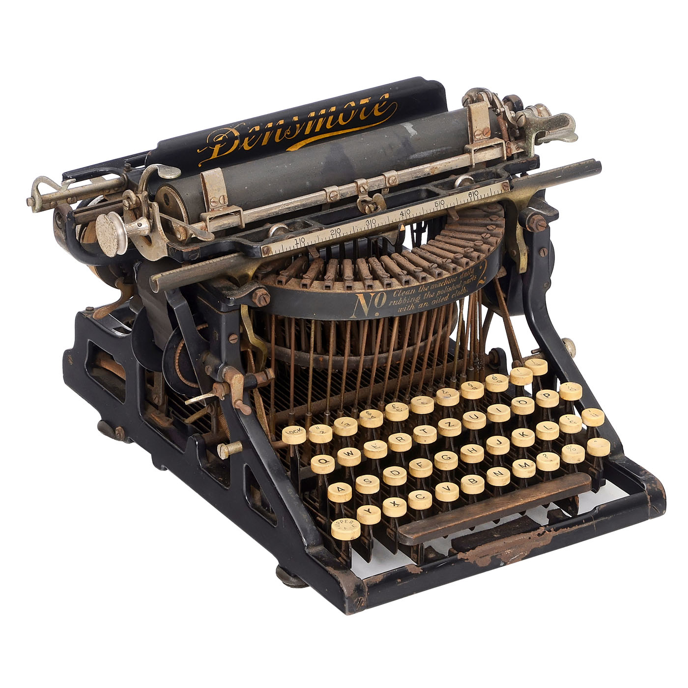 1) Densmore No. 2", 1894, second model of this classic American upstroke machine, 42 keys in 4 rows, rusty, carriage loose, serial no. 4808.