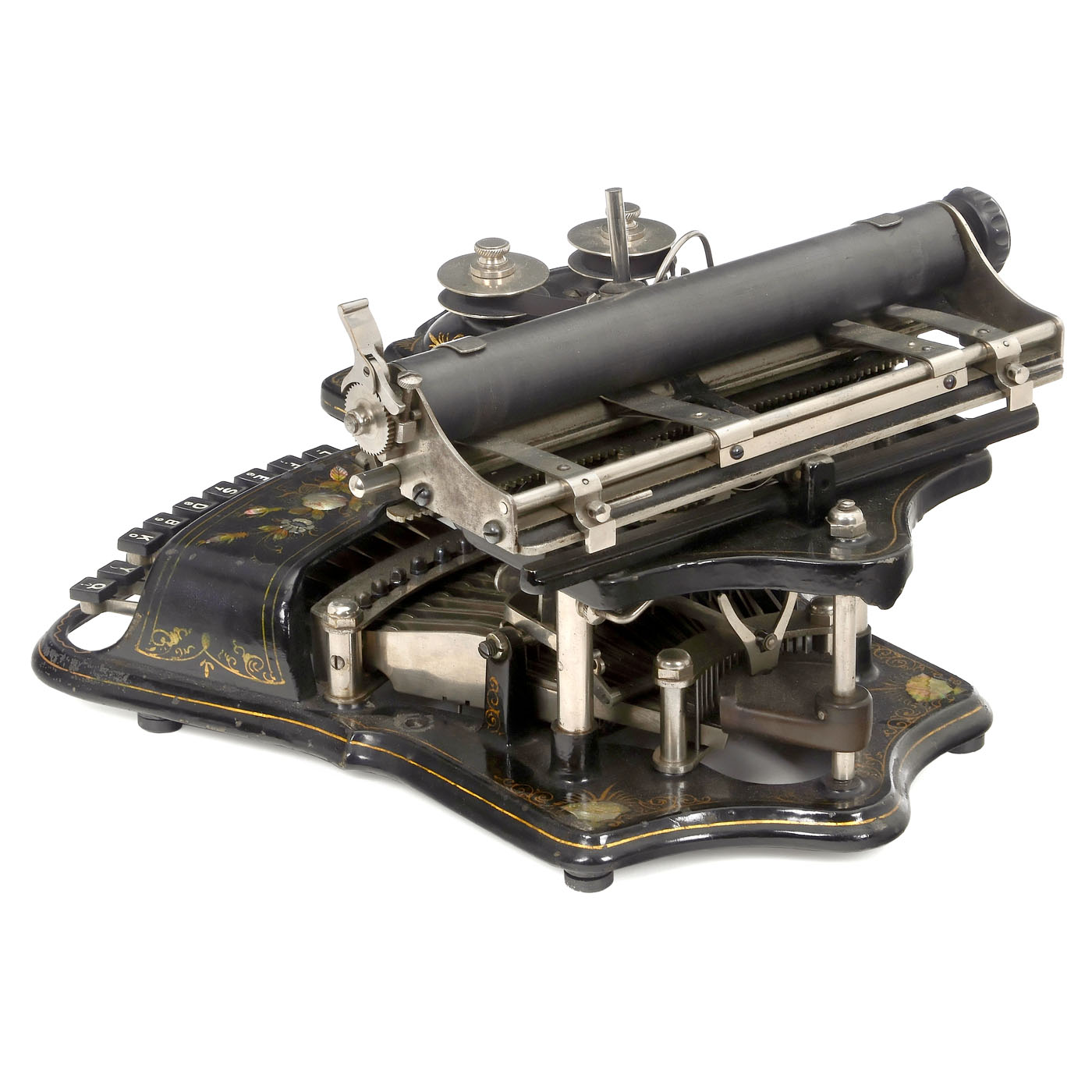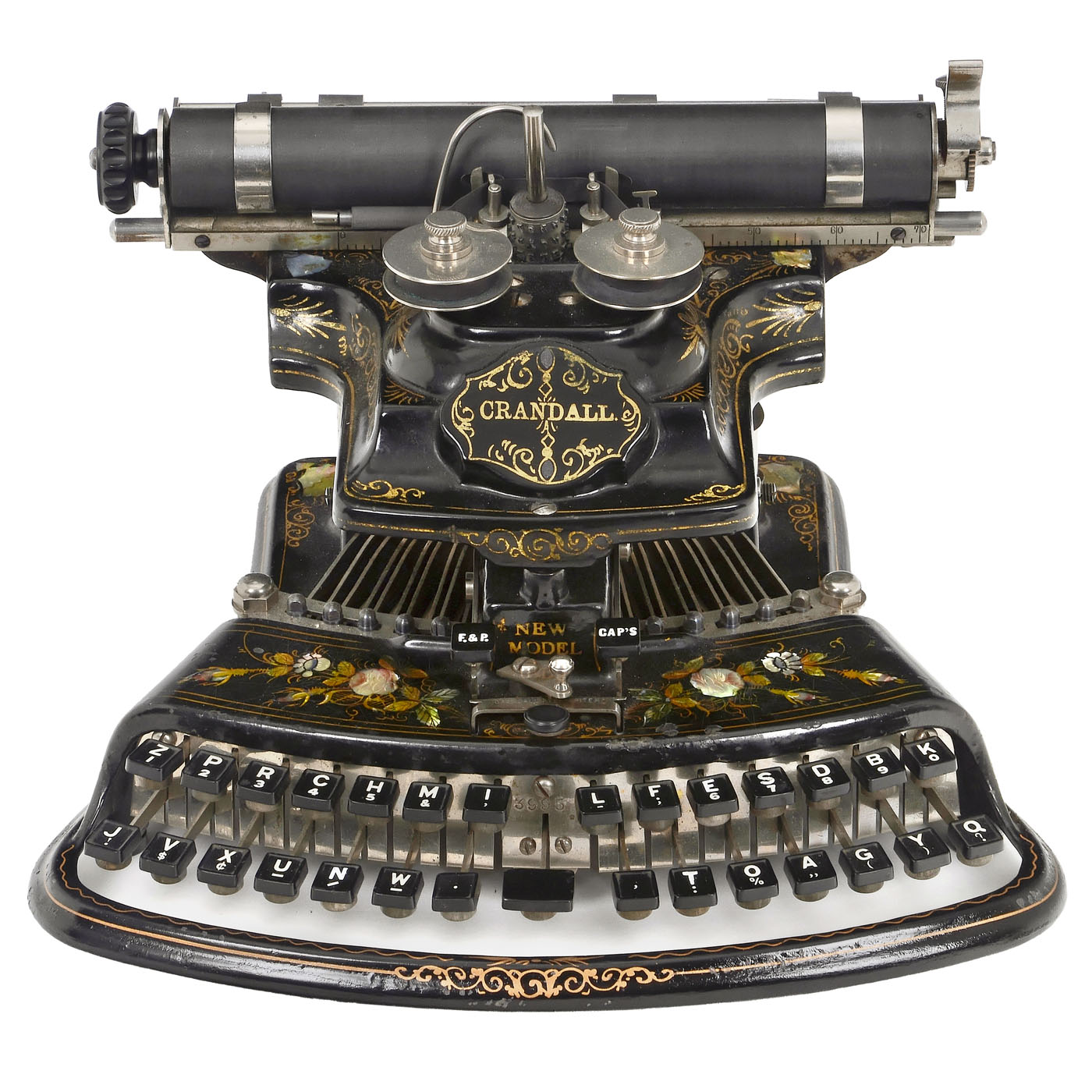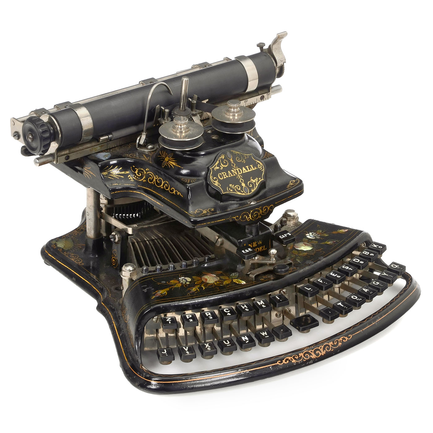 The Crandall Type Writer Co., Syracuse, N.Y. Serial no. 3995, with vertical typesleeve and curved two-row keyboard, one of the most attractive typewriters with its mother-of-pearl and gilt decoration, in excellent original working condition.