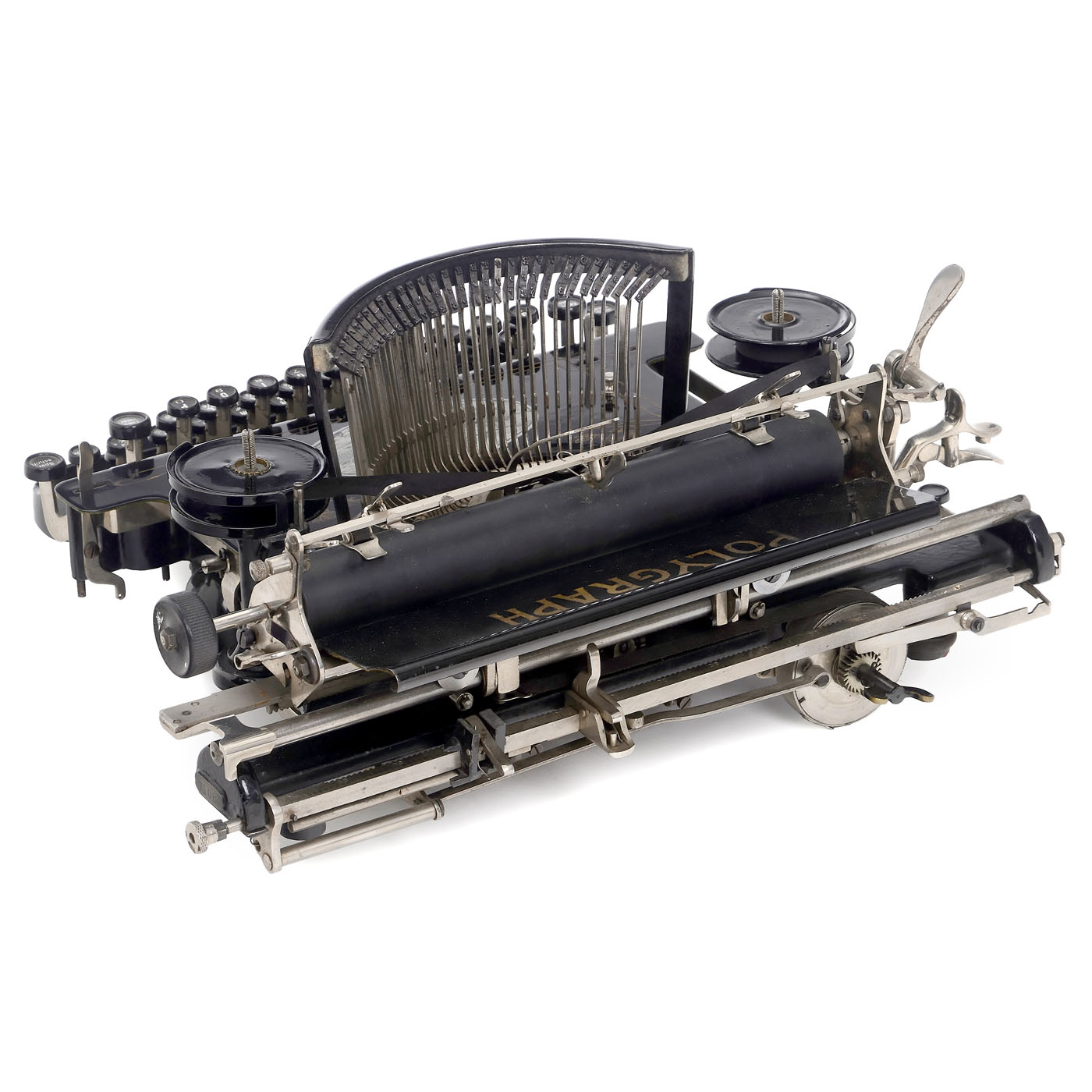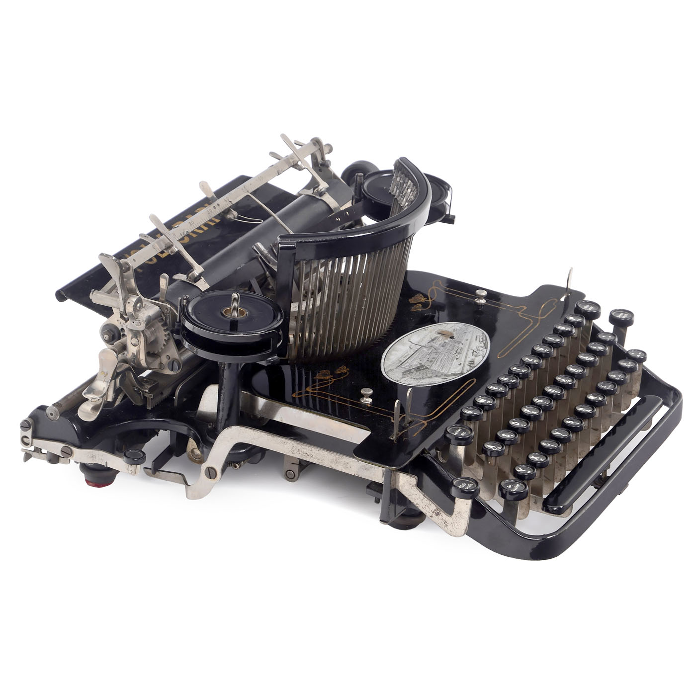 Polyphon Musikwerke, Leipzig. With a 3-row universal keyboard and double shift, but with only 32 keys for 96 characters (!), making it the most versatile German machine of its time.