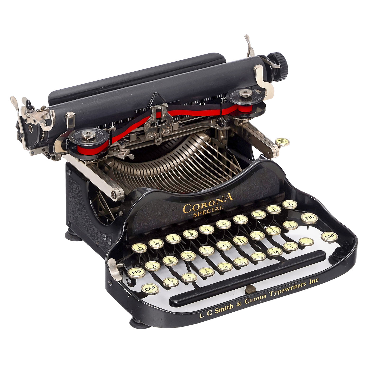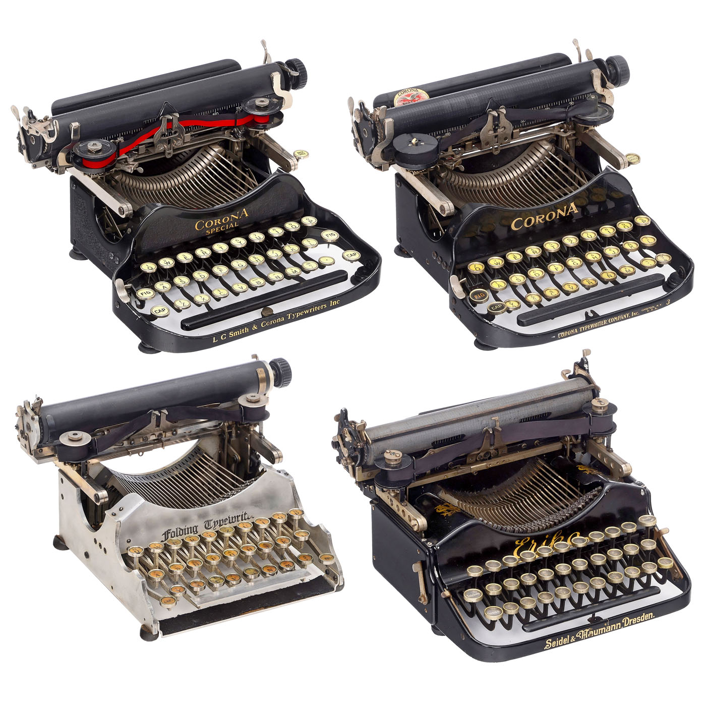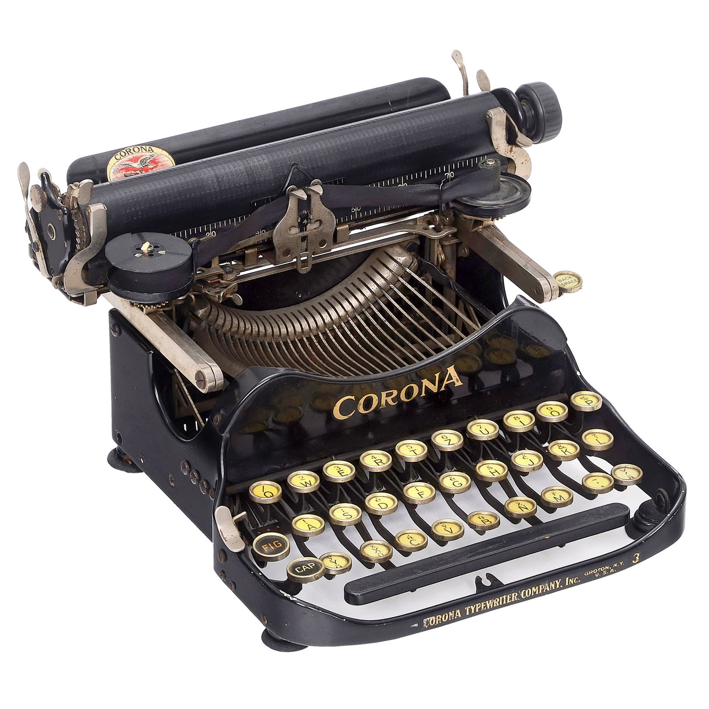 Platens and carriages can fold down to rest on the keyboard. 1) Corona 3, c. 1912, no. 468898, USA.