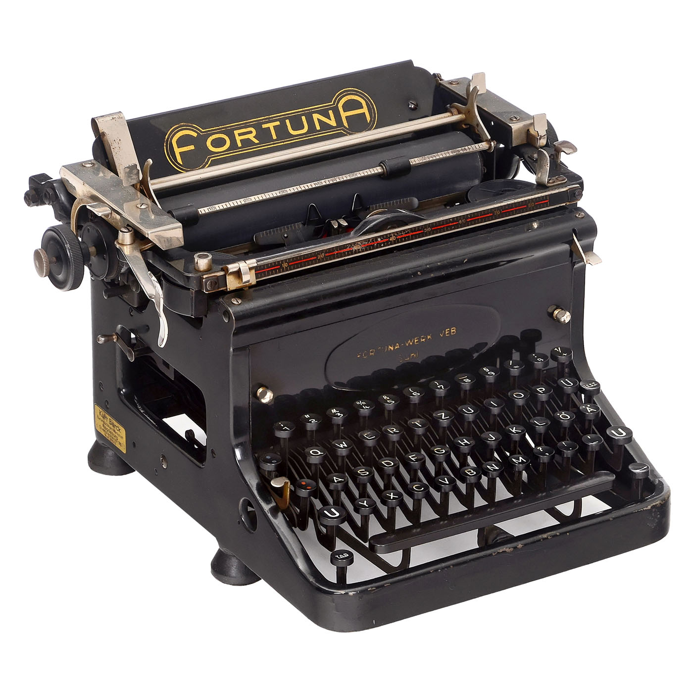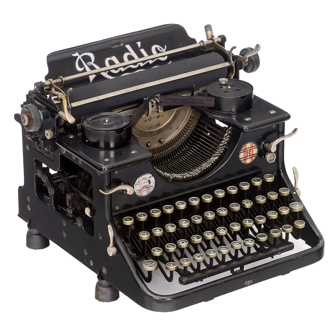 1) Radio, 1926 onwards, serial no. 952, four-row standard typewriter with type levers, single shift, 46 keys with 92 characters, developed by Franz Herlt, manufacturer: Concordia Maschinenbau A.G. in Halle, working, relatively rare.