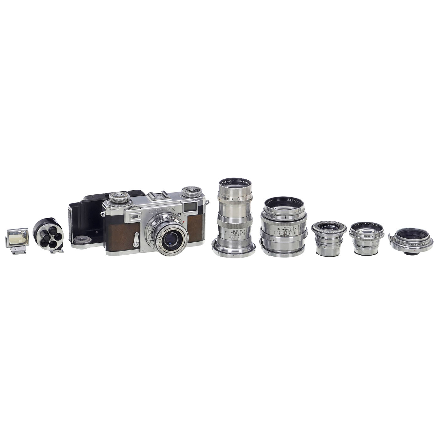 Zeiss Ikon, Dresden and Stuttgart. 1) Contax IIa, No. X 2647, Zeiss Jena Tessar 3.5/5 cm T. (2-/2-)