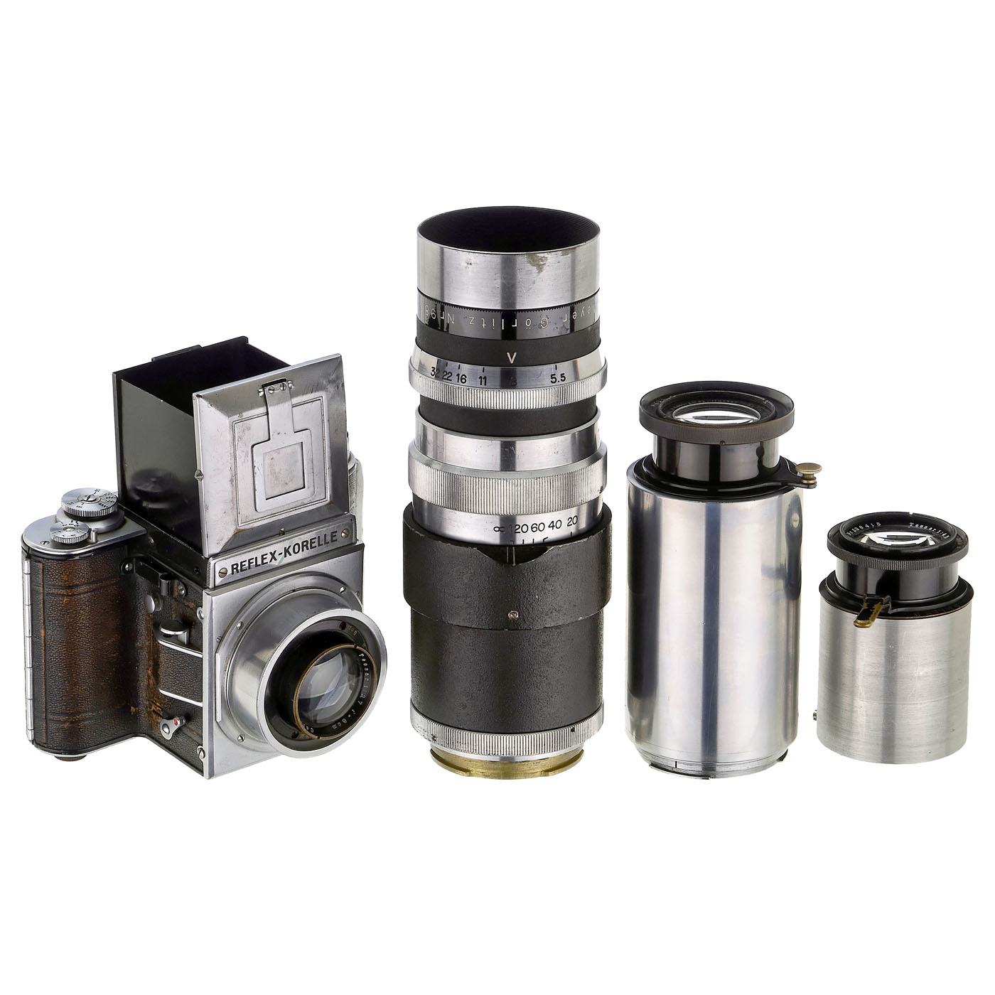 Franz Kochmann, Dresden. 1) Reflex Korelle III, 6 x 6 SLR, for large bayonet, shutter non-functional. (3-/