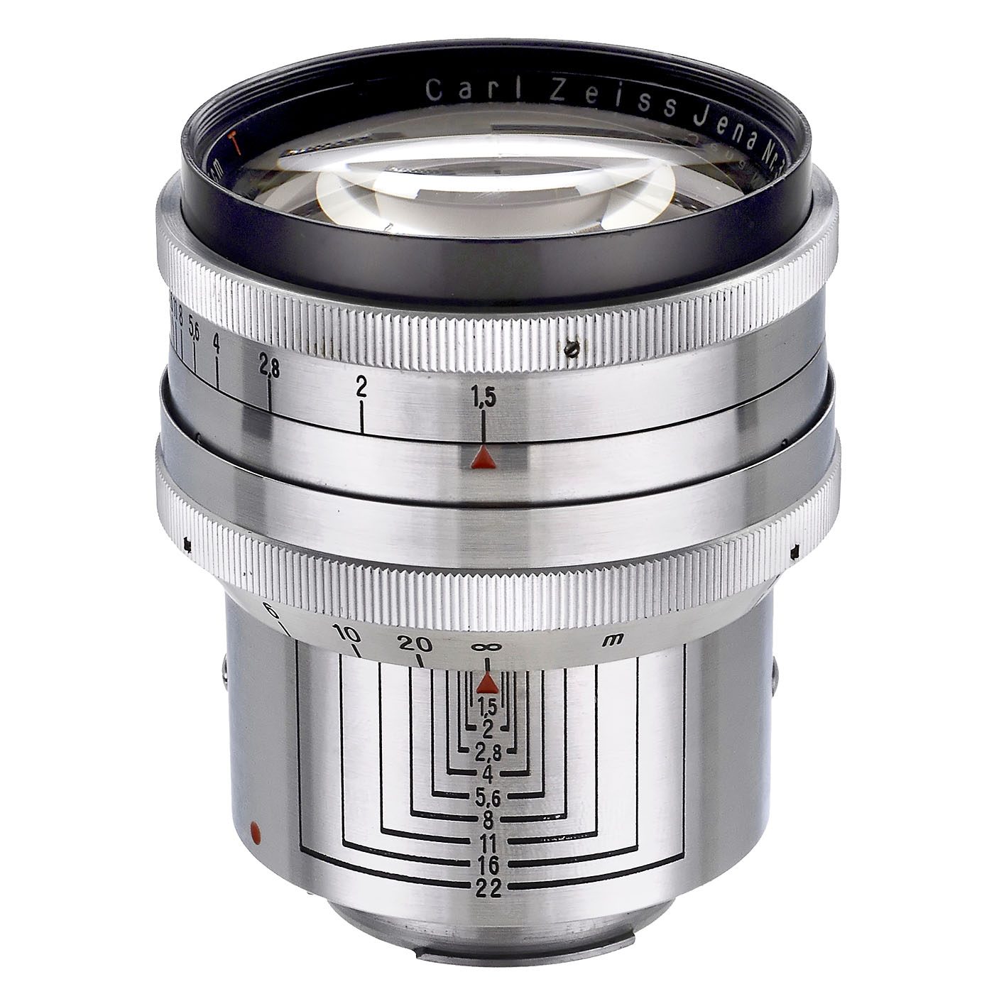 Carl Zeiss, Jena. No. 3322029, aluminum body, glass clean under point light and without any of the typical Biotar bubbles in the glass, the focusing gear and aperture working well, with both caps and case, in near-mint condition.