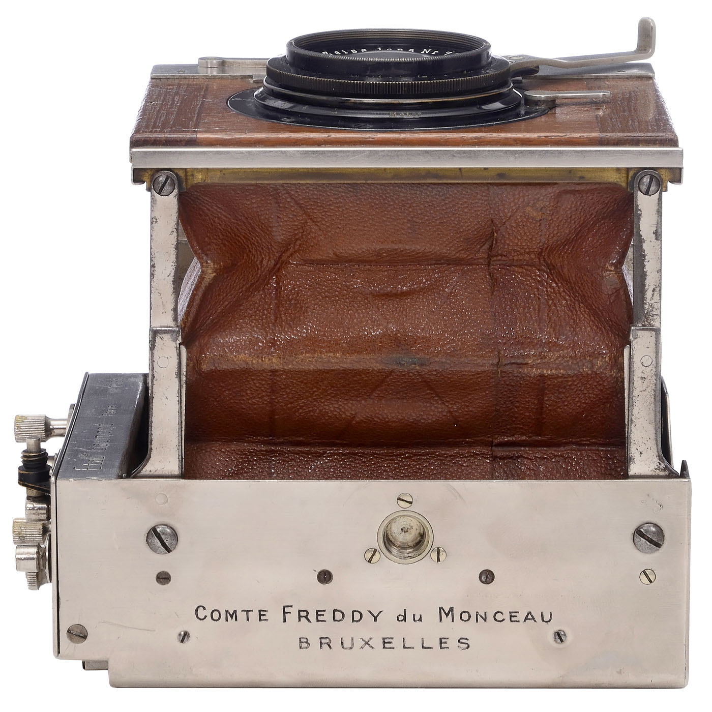 1) L. Gaumont, Paris. Reporter metal tropical camera no. 7985 for 6.5 x 9 cm, c. 1926, brown bellows, focal plane shutter 1