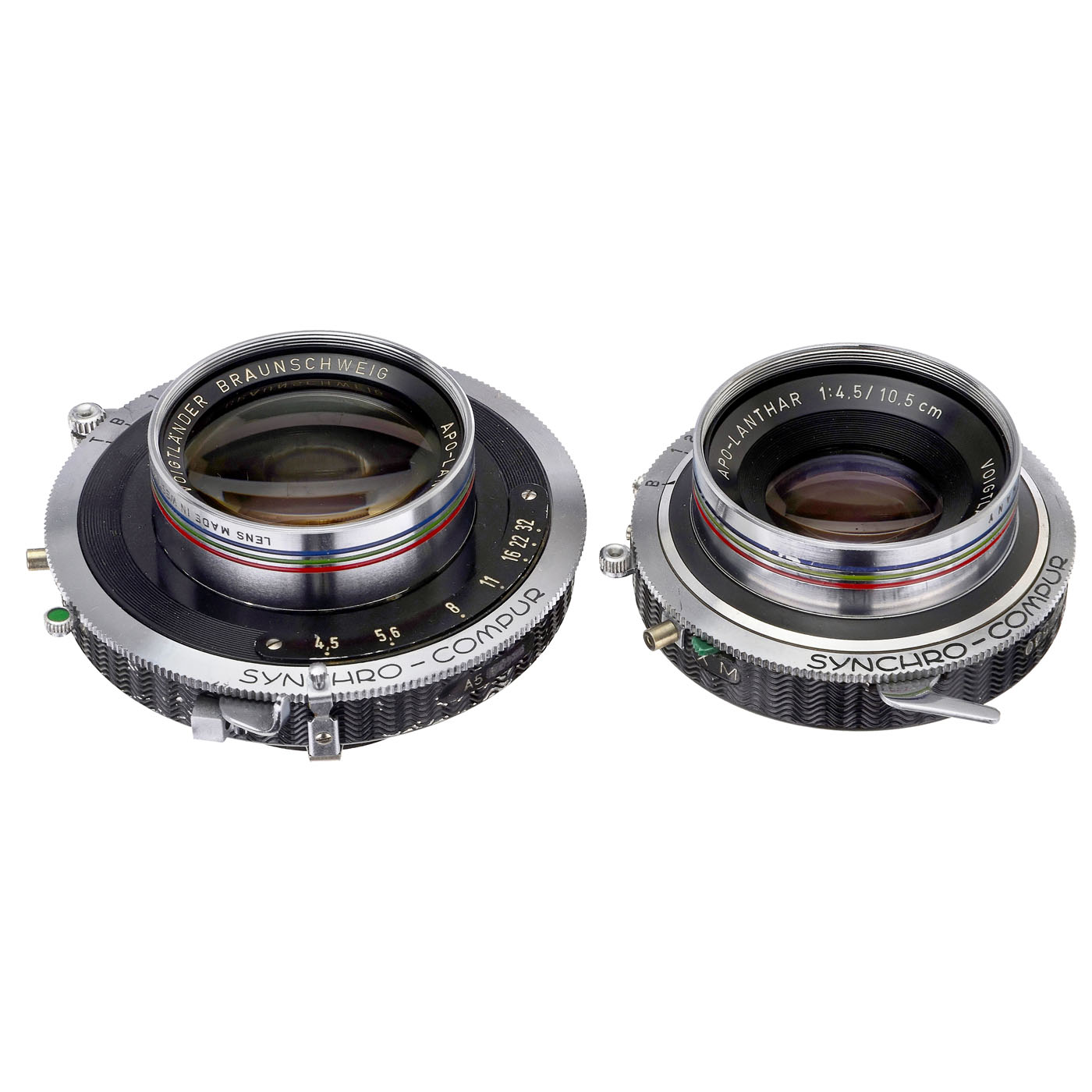 Voigtl?nder, Braunschweig. 1) Apo-Lanthar 4.5/10.5 cm no. 3464284, glass clean under point light, Synchro-Compur working. (3/2-)