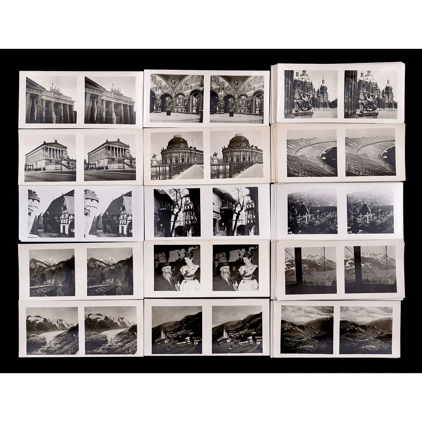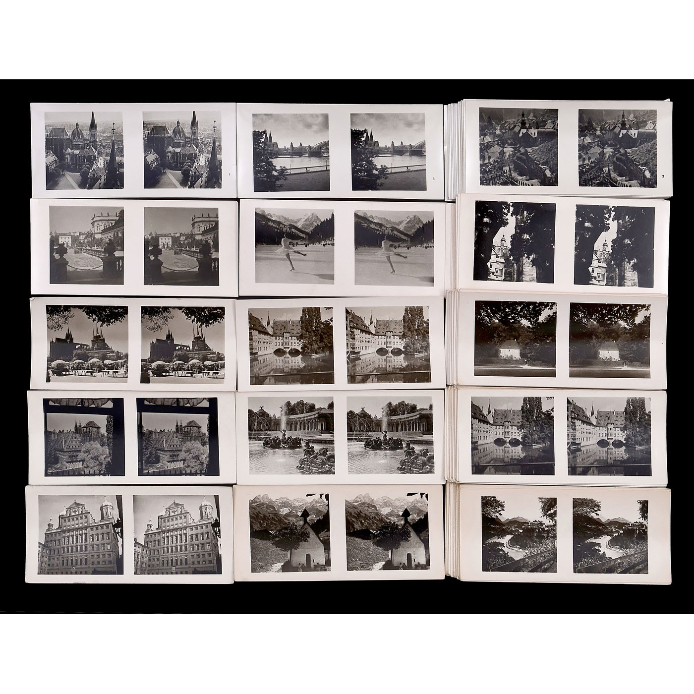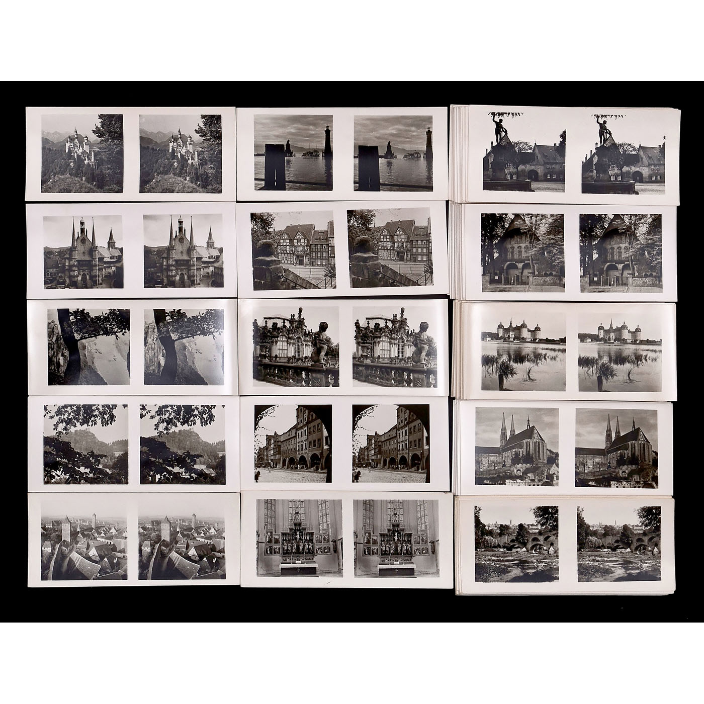 Sch?nstein, Oberaudorf. All approx. 370 stereo cards in 6 x 13 cm format with reverse printing, mostly in German/English, in good condition, without boxes. 1) Beautiful Homeland, cultural monuments, cities, landscapes of the states of Northwest Germany 1