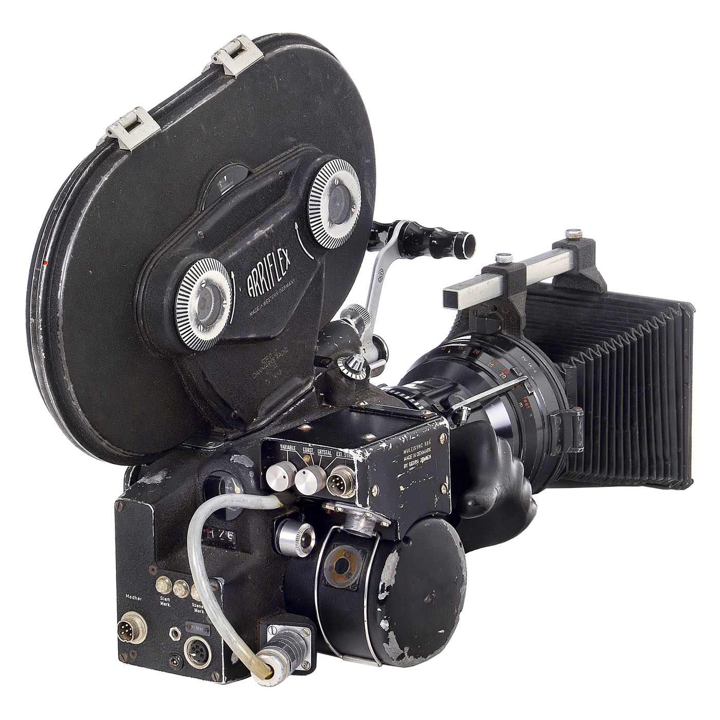 Arnold & Richter, Munich. A low-noise SLR camera for 120 m of film in a separate cassette (three cassettes included). Lens: Angenieux Zoom 2.2/12