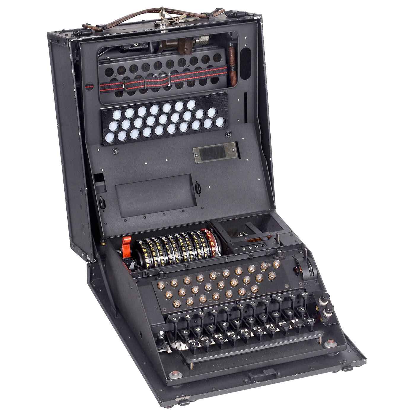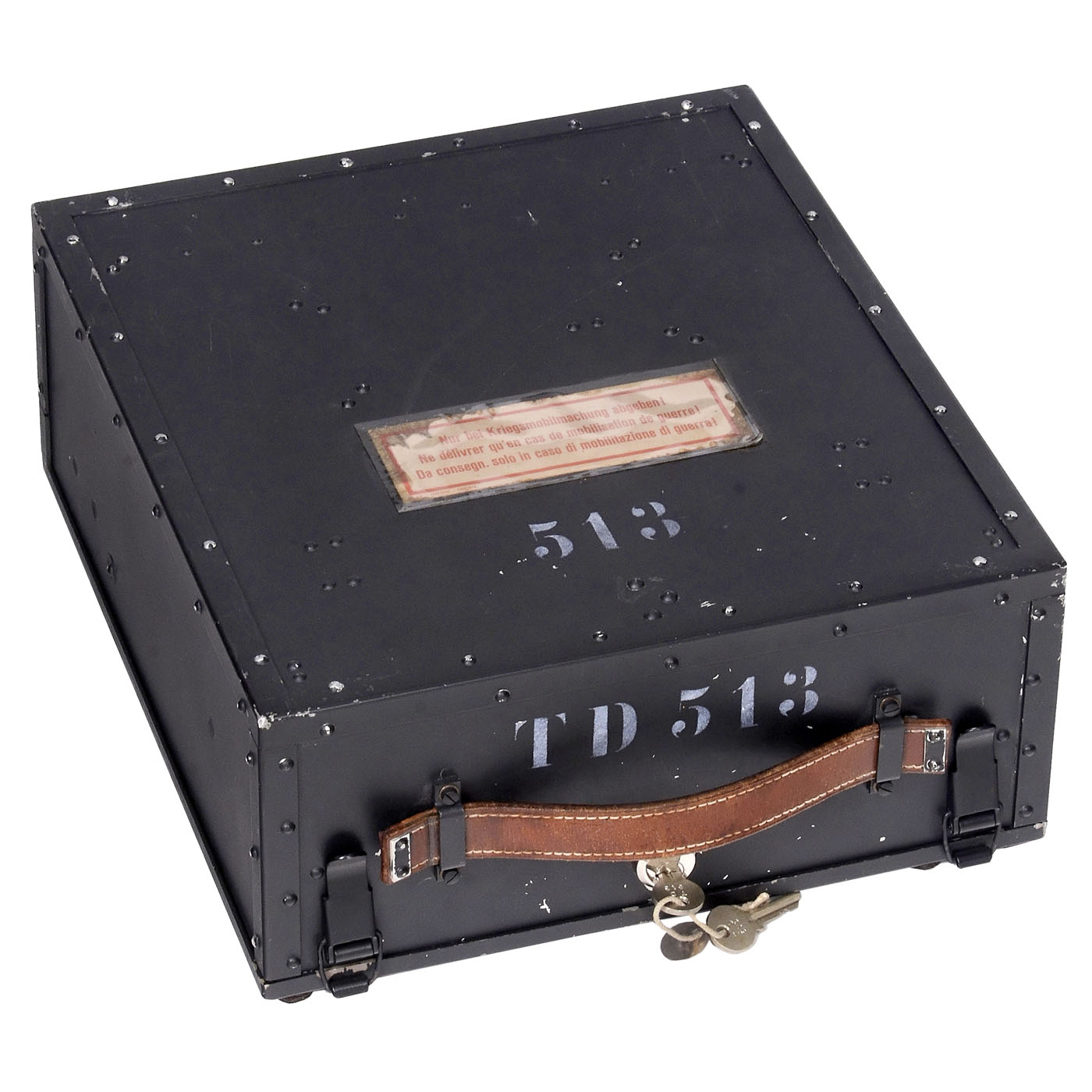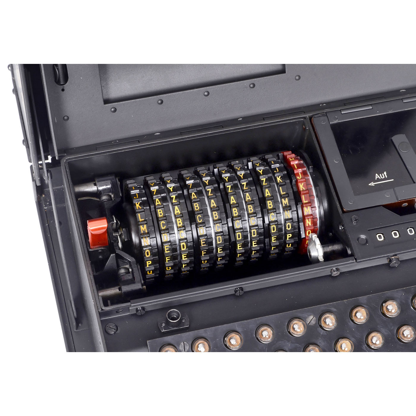 Zellweger A.G., Uster, Switzerland. No. 513, rare ten-rotor successor of the legendary "Enigma" WWII ciphering machine, produced exclusively for the Swiss army, with cable, additional lamps, keys and an extra lamp panel. ÿ Note: Only 640 examples of this rare machine were made and it was never marketed officially. Mint condition.