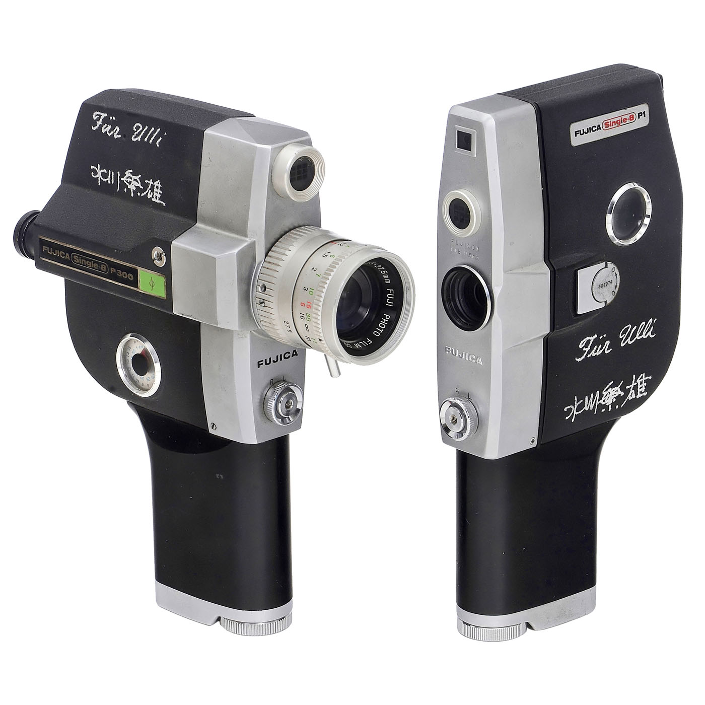 Fuji Single-8 Film Cameras P1 and P300, Signed