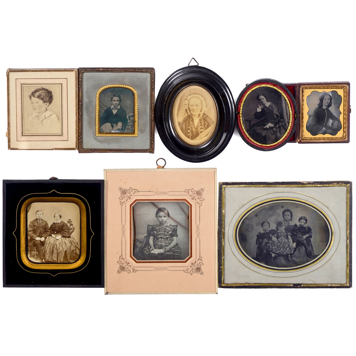 All 8 portraits in smaller frames or cases, ideal for a representative cross-section of all image techniques, from the drawing c. 1819, the daguerreotype (portrait of Alwine Walther 1842ÿ1905) with the back label "Daguerreot