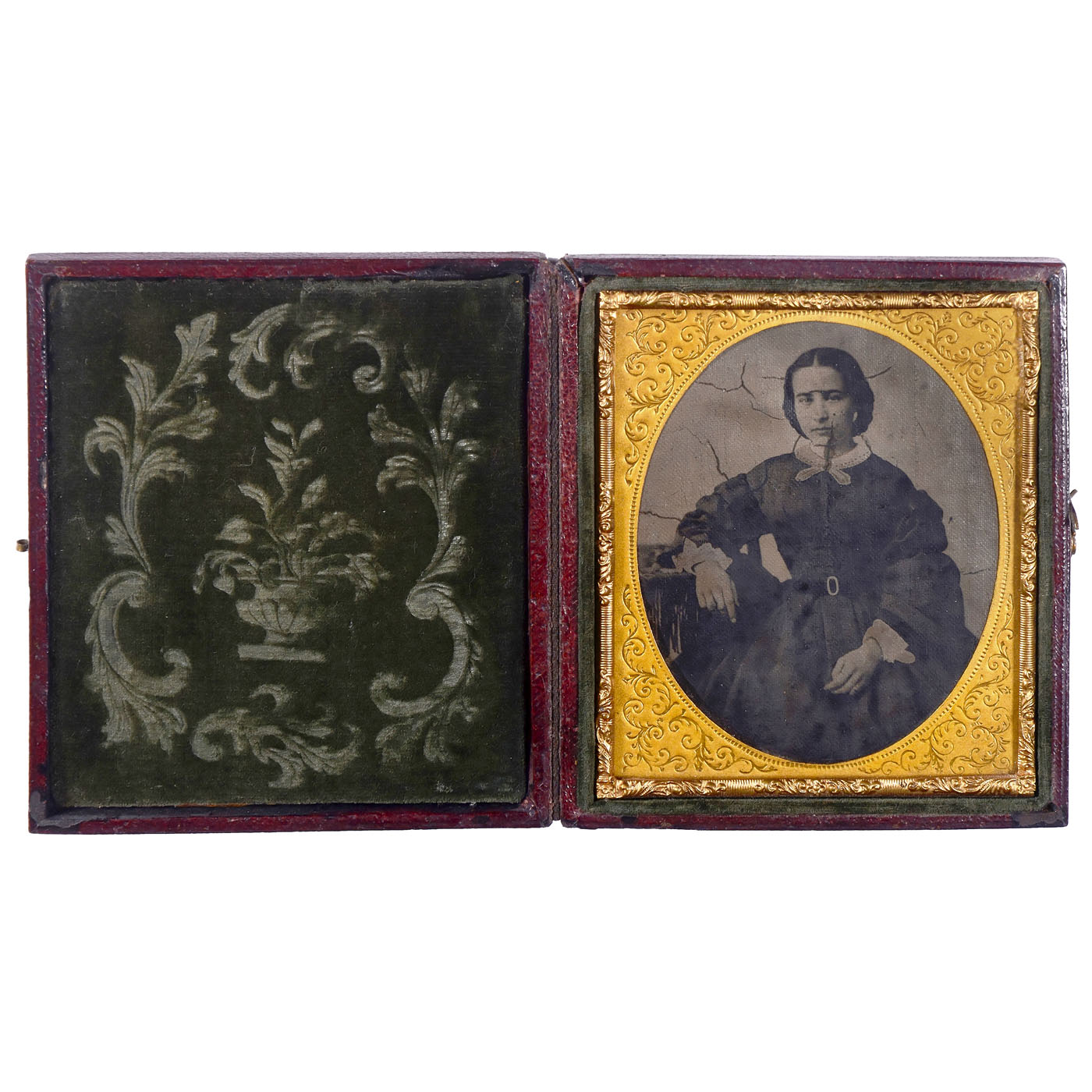 Anonymous photographer, 6 x 8 cm format, waxed linen support. Binder: colloid, light-sensitive substances: silver iodide and bromide, and iron vitriol developer. Extremely rare photograph, as the linen became brittle over time. This process was used only for a very short time (between 1853 and 1858). In a case.