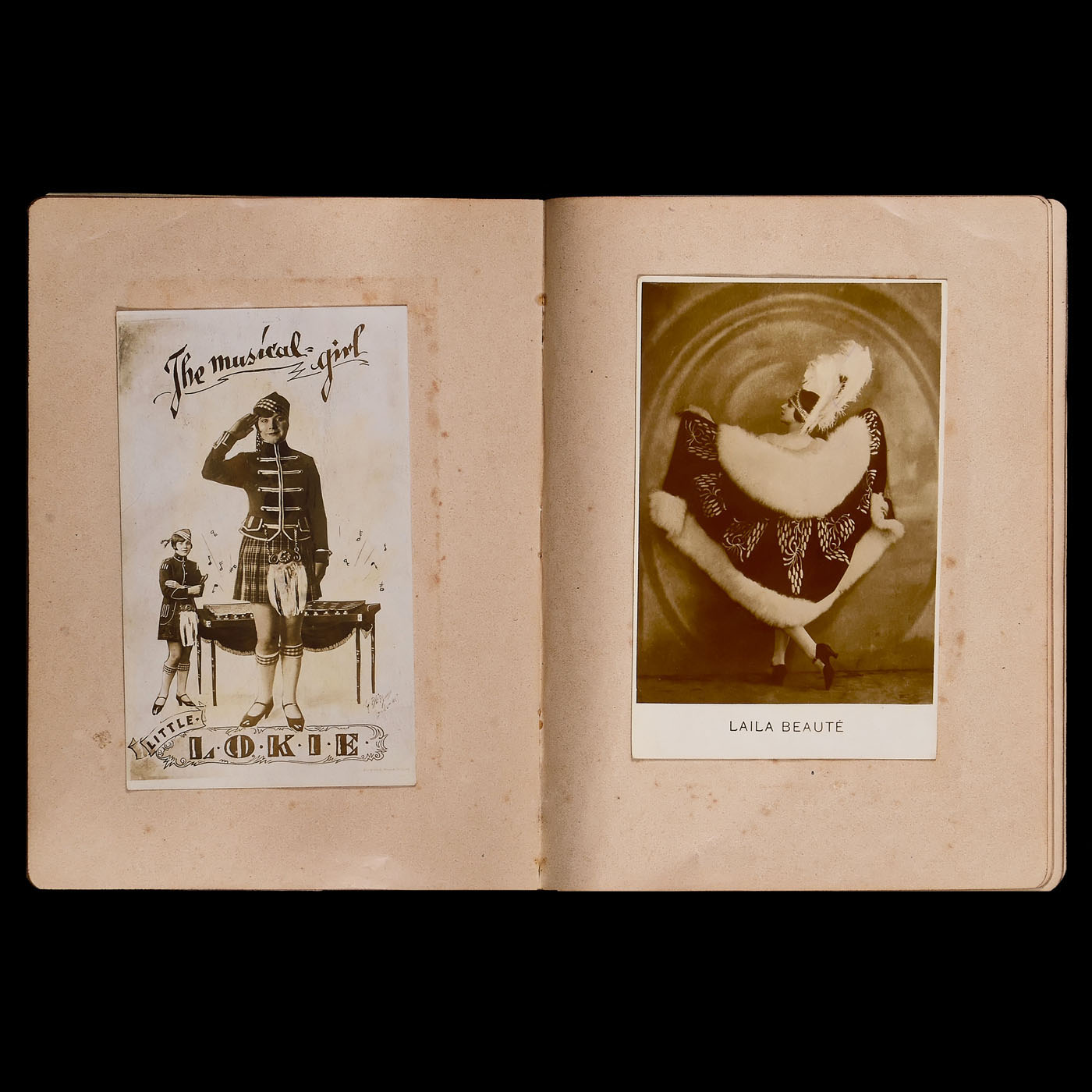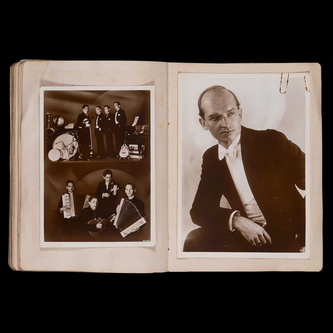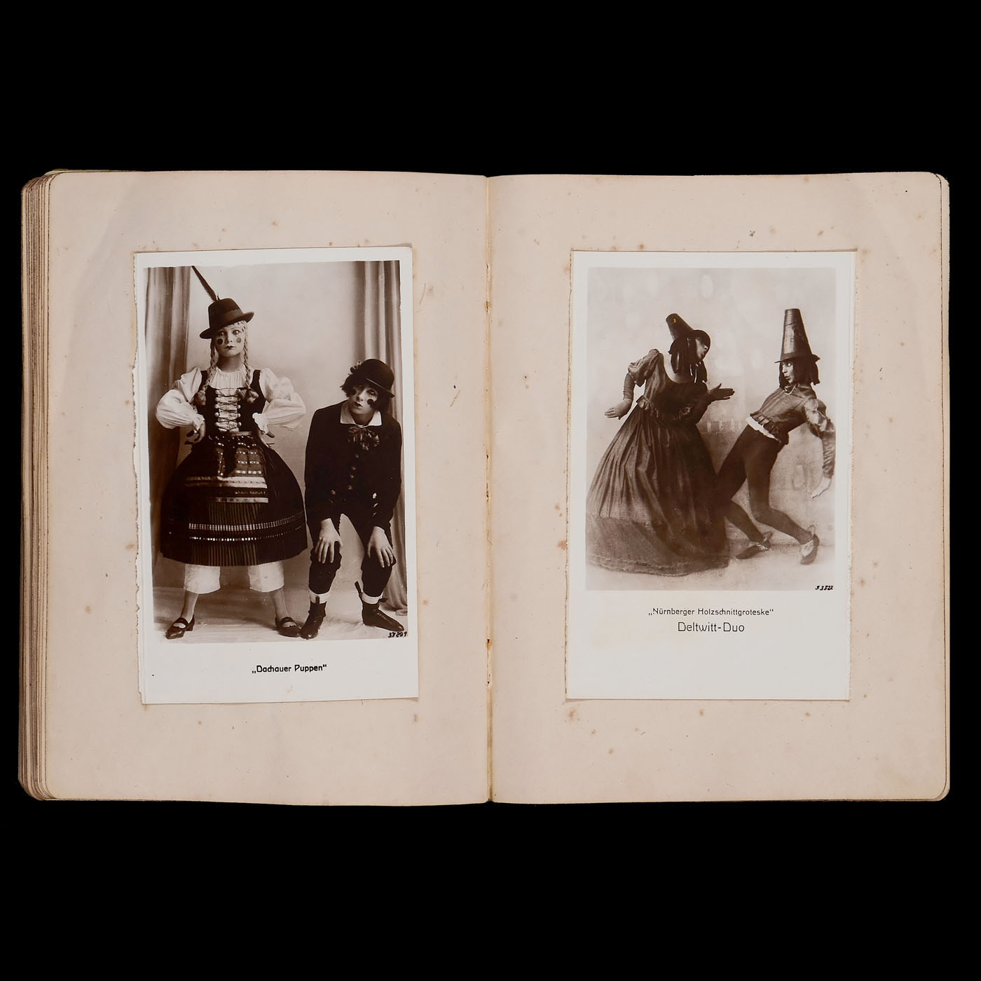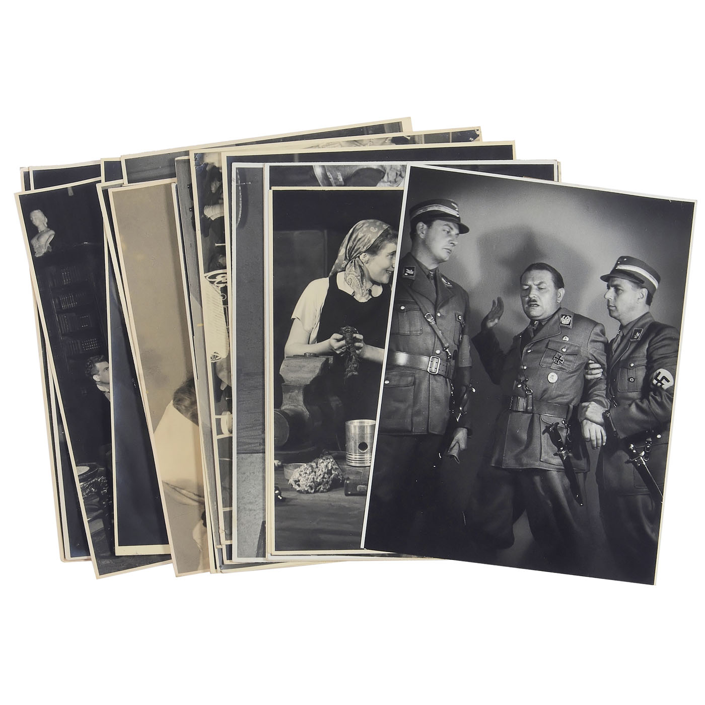 1) Le The?tre magazine, Juin II ÿ Decembre II 1904, 35 x 28 cm, bound. Excellent photographic material! ÿ 2) Actor's album Vienna 1860ÿ1865, 48 cartes de visite on 25 sheets, photographs by Reutlinger, Klughardt, and Carjat. The clasp is missing. ÿ 3) Double leporello album with 12 cabinet photos of a pair of violinists from 1870ÿ1880. ÿ 4) Album 32 x 28 cm, 10 plates of 7 photos each from 1902ÿ1908, only French actors in action or in private. ÿ 5) Russian album 23 x 29 cm, 17 plates with larger formats, German and Austrian actors, including: "To the blower of the Nibelungen ... in friendly memory, Moscow, April 1889". ÿ 6) Album 28 x 22 cm, 30 plates for C.d.V. and cabinet, partially filled, often with highly exalted gestures. ÿ 7) C.d.V. album 16 x 23 cm "Dedicated to the director of the church choir in Winnekendonk, Mr. Teacher Rensing, 1878", partially filled. ÿ 8) Postcard album with over 100 cards from the German cabaret and music scene from 1920 to 1930. ÿ 8) Approx. 140 postcards from actors from 1925 to 1940, some with autographs. ÿ 9) Approx. 36 cabinet cards and other formats from 1880ÿ1910, some with dedications and notes. ÿ And: 10) Surroundings of the Dresden State Theater 1953ÿ1956, approx. 60 stage photographs ranging in size from 24 x 30 cm to mostly 18 x 24 cm, some with captions, mostly with the names of all the actors.