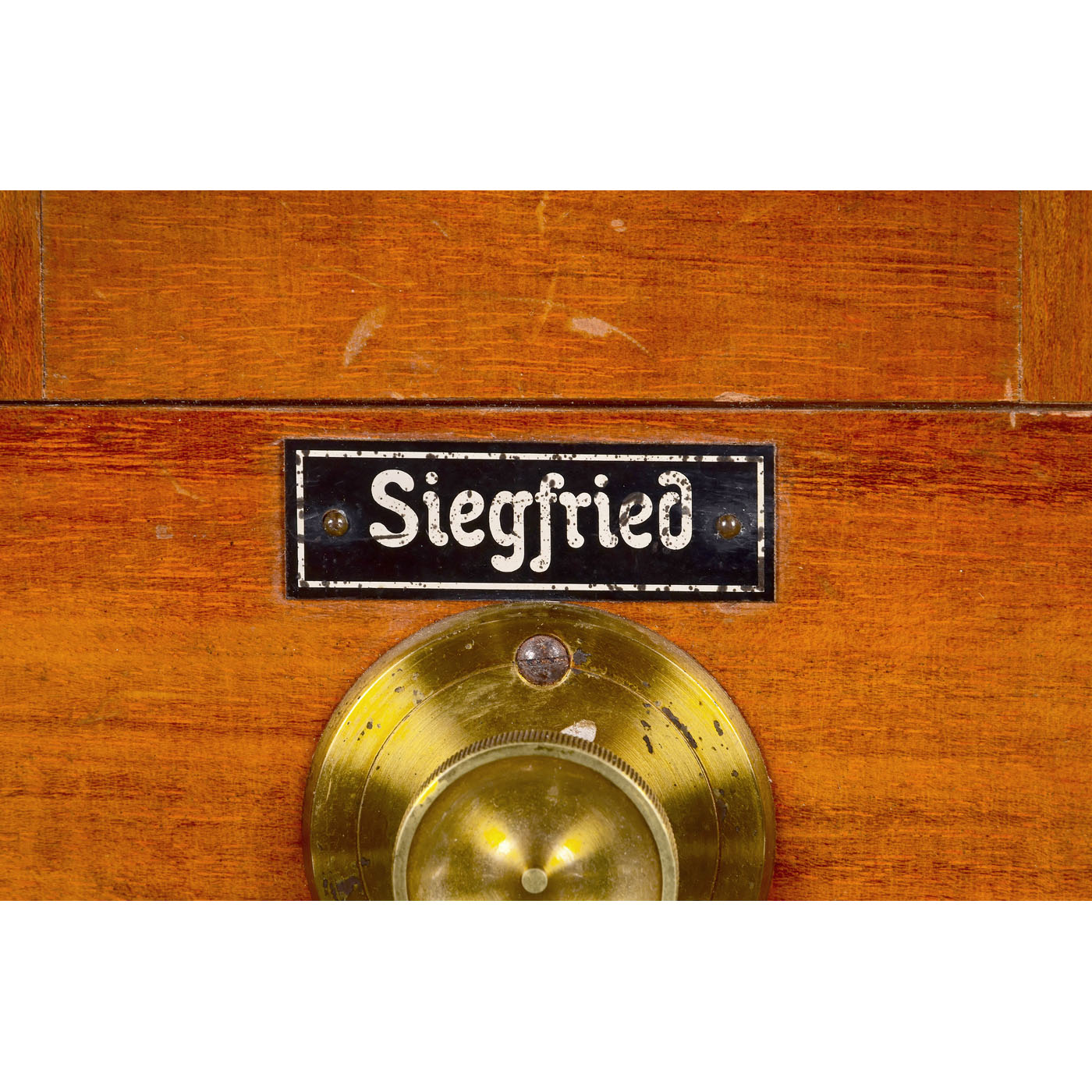Both devices could be used as they are today. 1) Unger & Hoffmann AG, Factory for Projection Apparatus, Dresden-Berlin. Model "Siegfried", c. 1900, beautiful wood, probably reddish-stained and polished beech, L/W/H 66 x 25 x 47 cm, more recently converted for 220V/150W projection bulbs, including a modern double condenser, working, with a hidden switch inside. The 15 cm ? condenser at the front of the device is cleverly designed to be lifted for cleaning. Green interchangeable bellows, extension to approximately 35 cm, with a Rodenstock Splendon 250 mm interchangeable lens in a focusing mount.