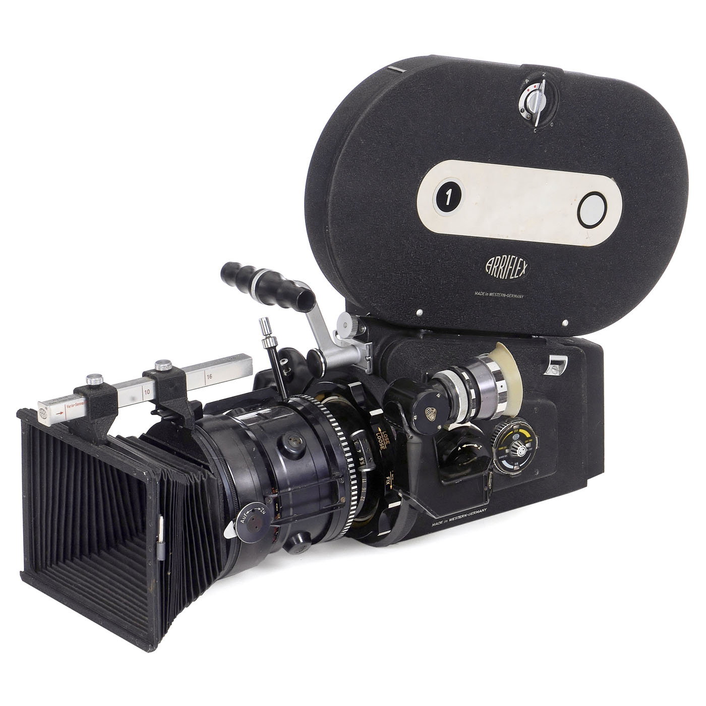 Arnold & Richter, Munich. Arriflex 16 BL, a quiet 16mm film camera for use with a 120m film magazine. A reflex camera with a blimped zoom lens: Carl Zeiss 2.8/10