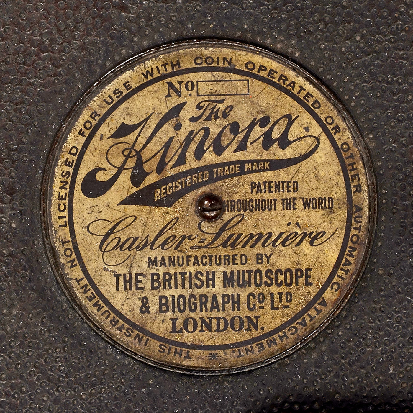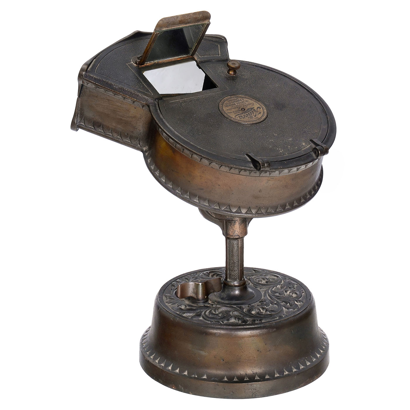B.M. & Biograph Co. Ltd., London. Home movie machine for 2 persons, 2 lenses, bronze case and stand, spring-driven, with Mutoscope reel The Kinora (Lumi