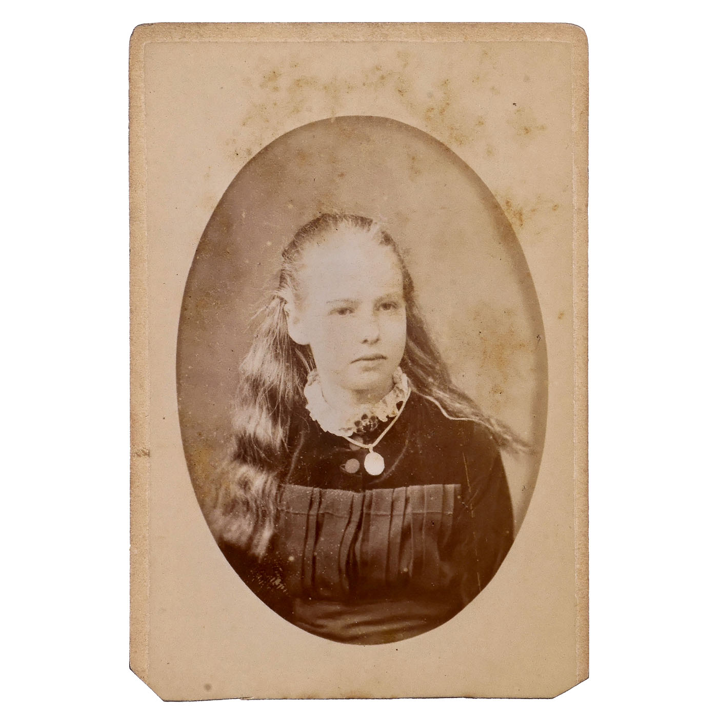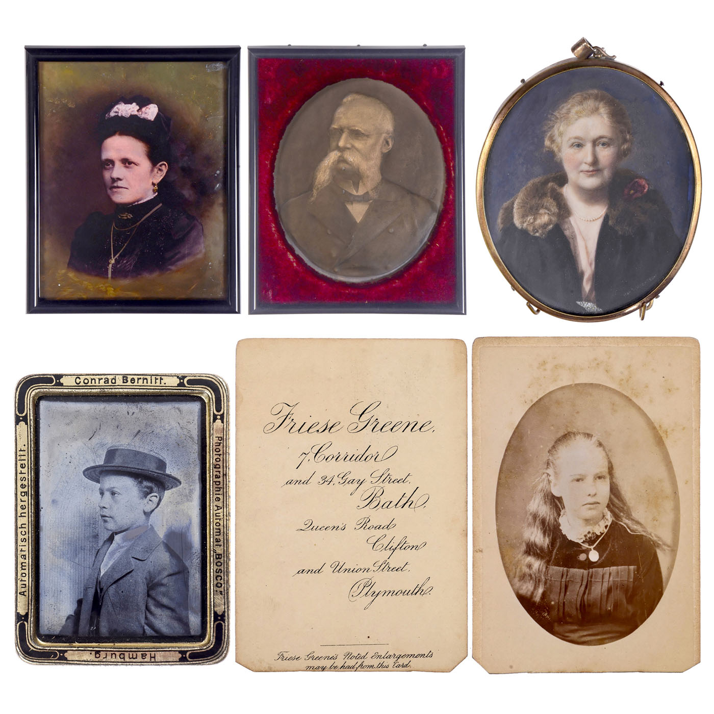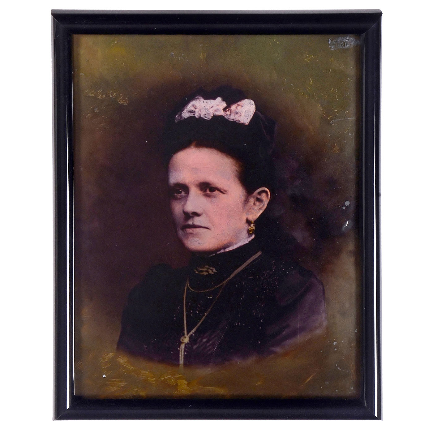 1) Very large Ambrotype, c. 1860. Portrait of a woman, 18 x 24 cm, convex glass. Reverse-glass painting, colored. Masterful work. (3/