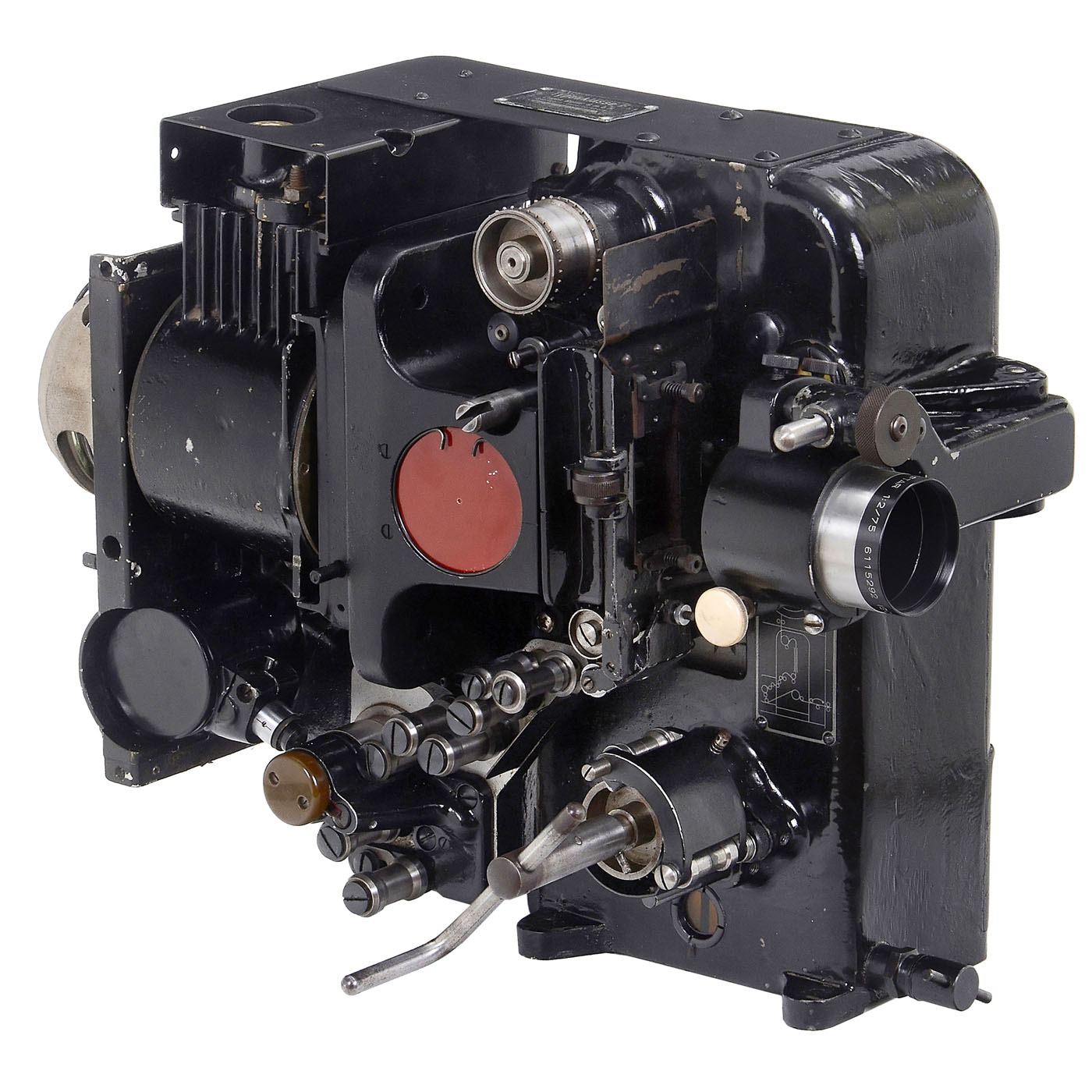 Eugen Bauer, Stuttgart. Complete projection head with scanner for optical sound, a water cuvette for cooling the film in the projection window, a lens condenser, and the Super-Kiptar 2/75 mm projection lens.