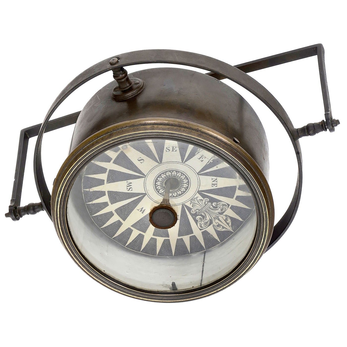 England, intended for installation in the captain's cabin above the bed, brass, paper compass rose, gimbal suspension, ? 6 in. Very rare.