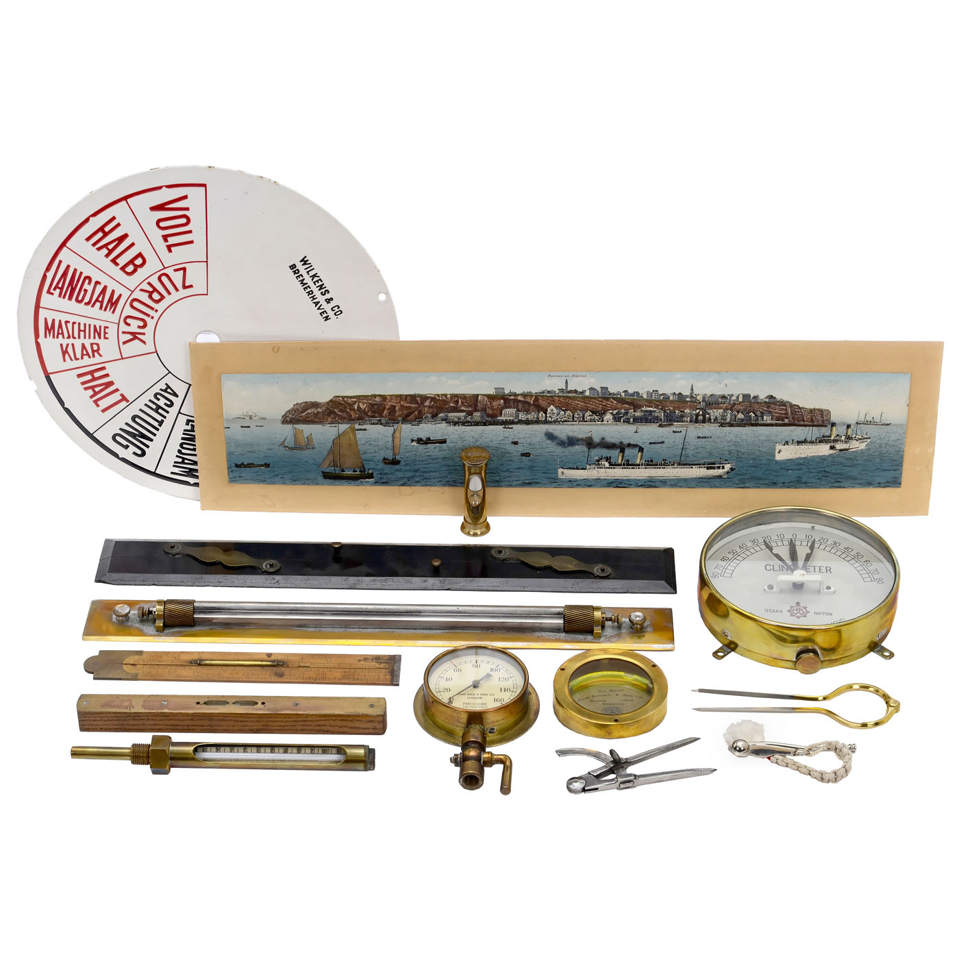 1) Engine telegraph, Wilkens & Co, Bremerhaven, front only, raised enamel, ? 15 ? in.