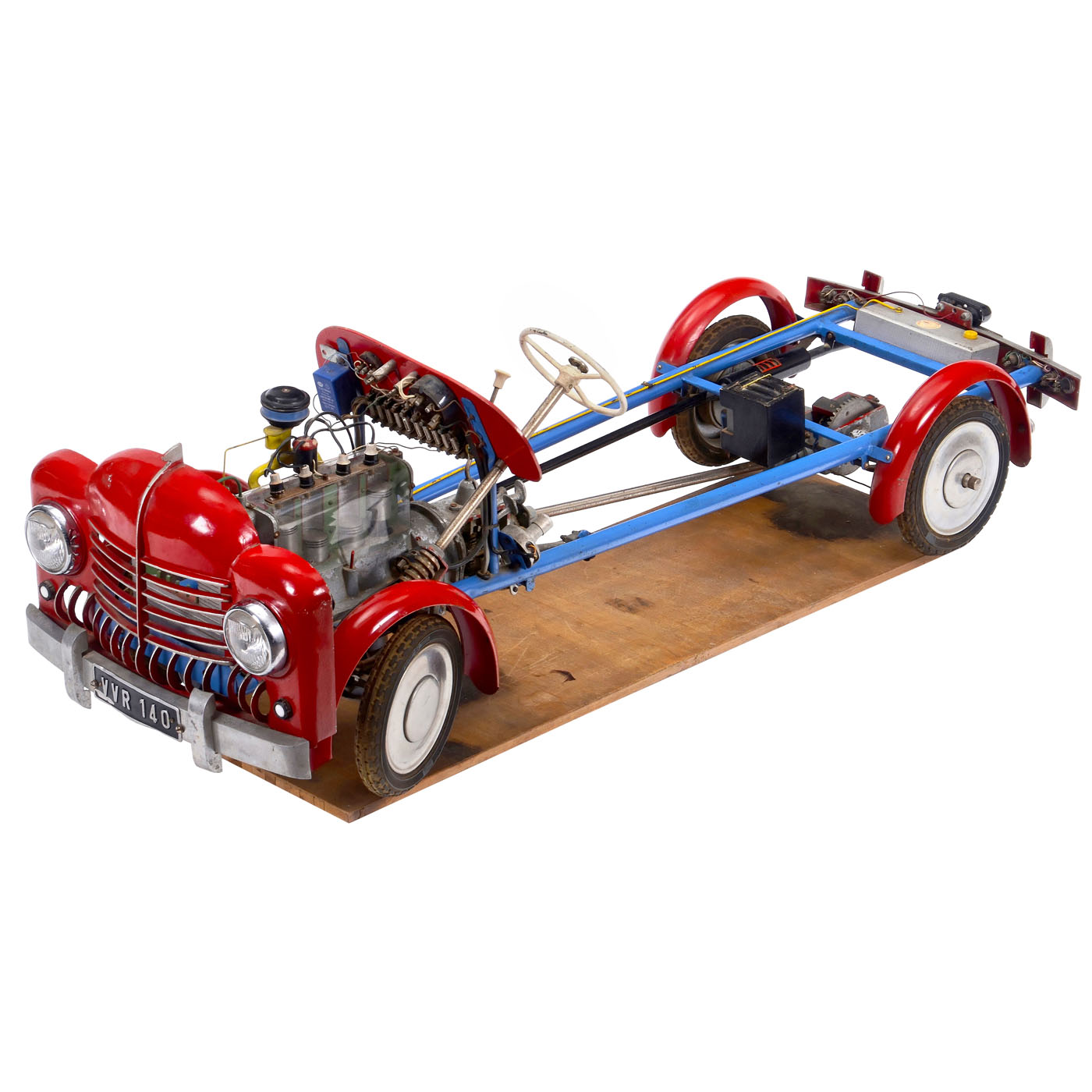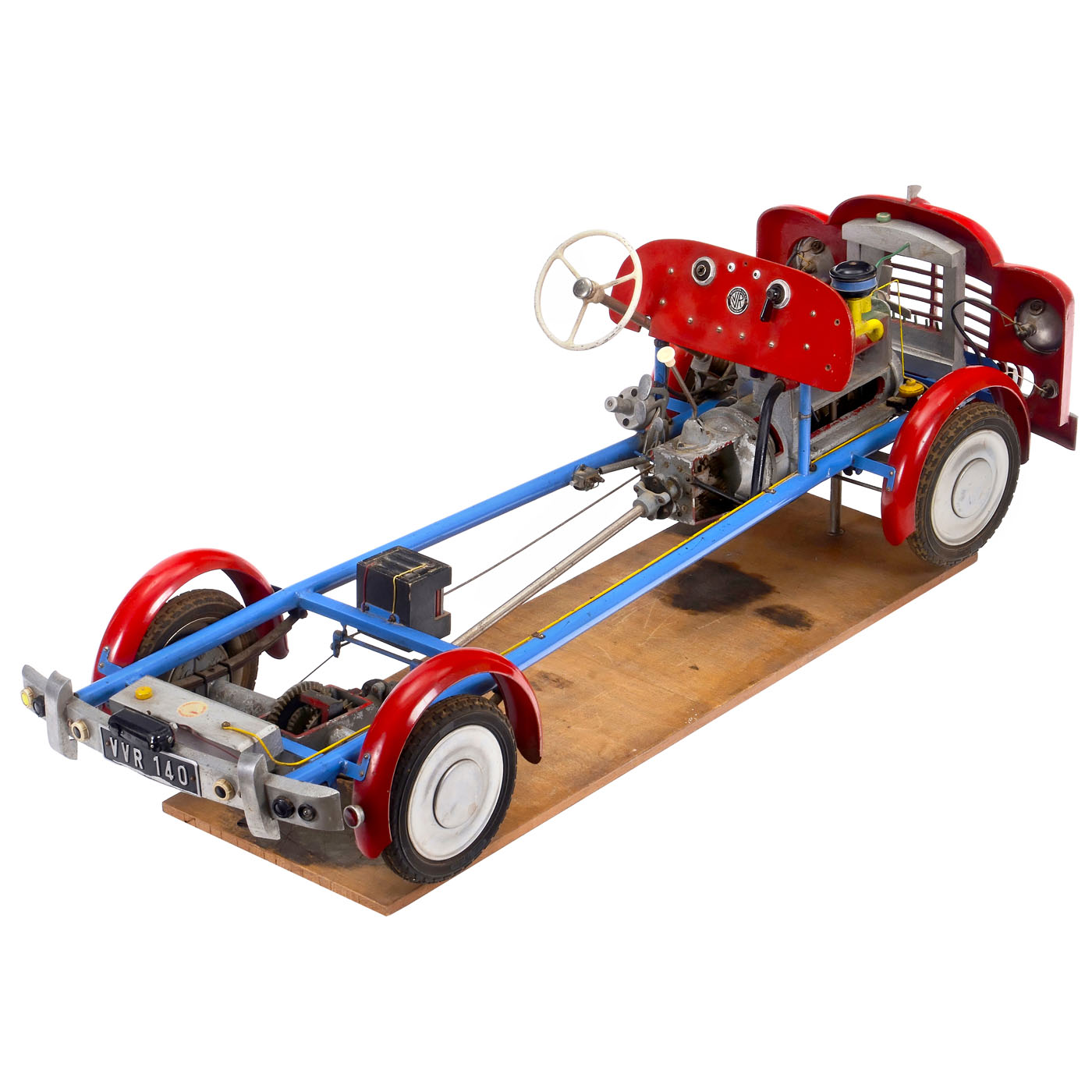 Manufactured by: "Verkehrs-Verlag Remagen". Measurements 51 x 19 2/3 x 15 2/3 in., demonstration model with working engine, lights, steering mechanism etc., 230 V. ÿ A fascinating exhibition piece and collector's item! Minor missing parts, functionality not tested.