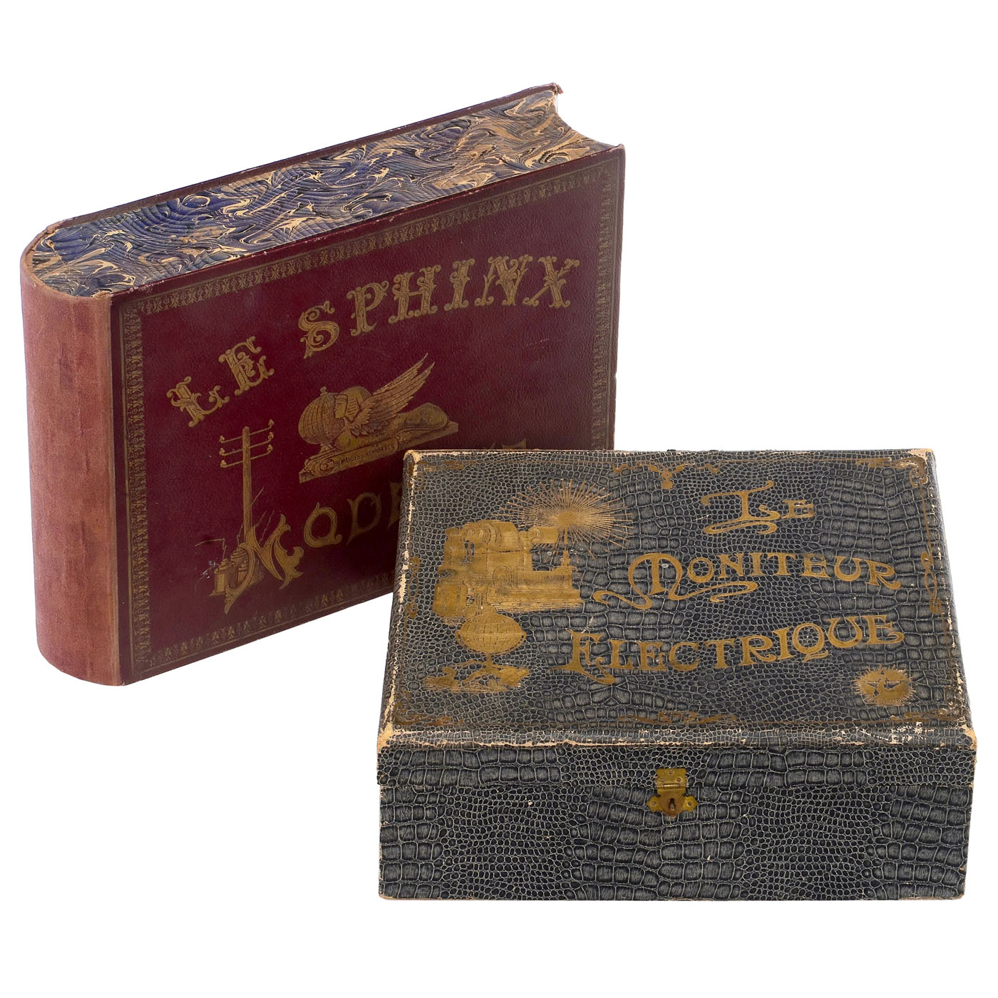 France. "Le Moniteur ?lectrique" and "Le Sphinx Moderne", battery-operated, each with several cards, with a bell to signal the correct answer, in boxes.